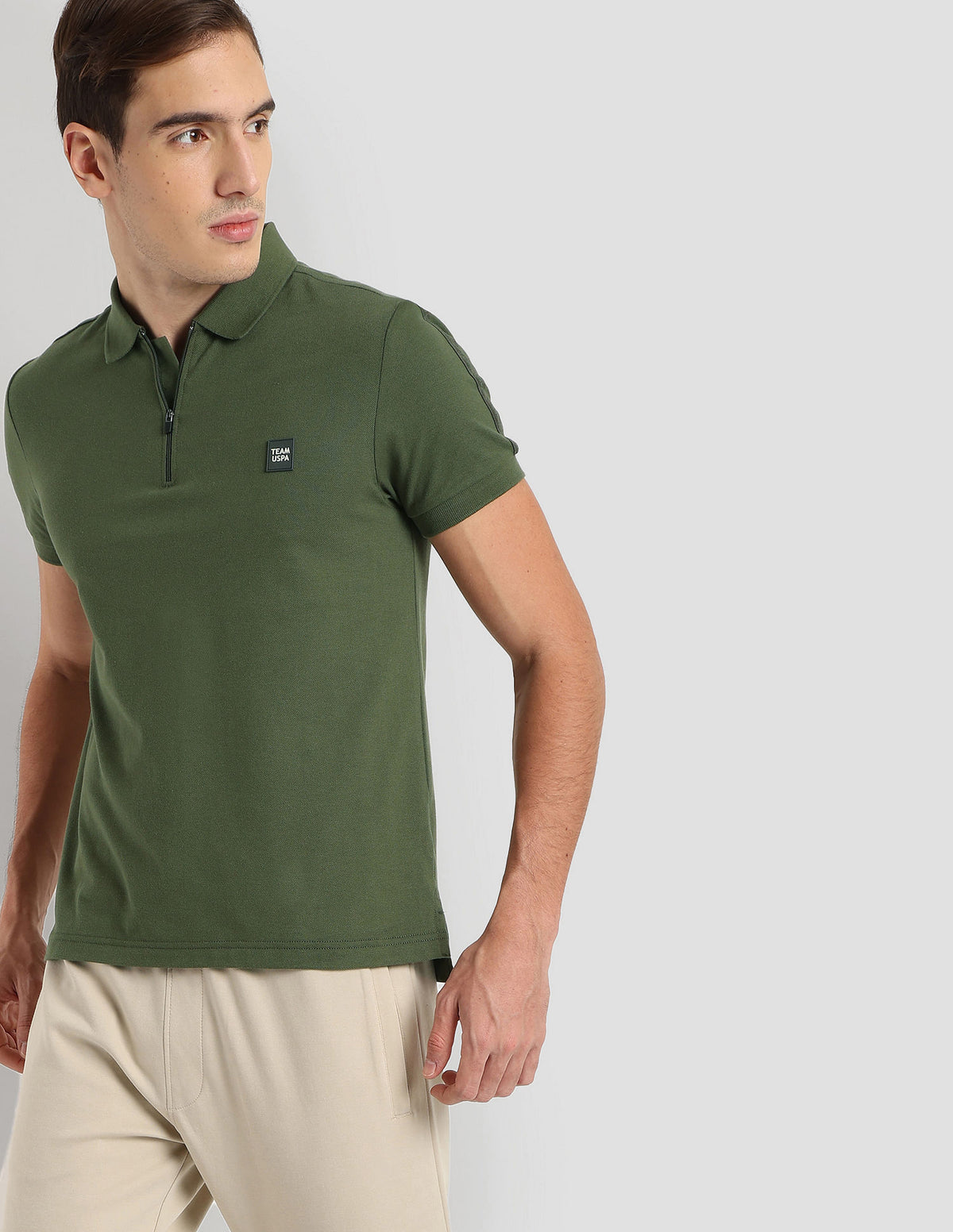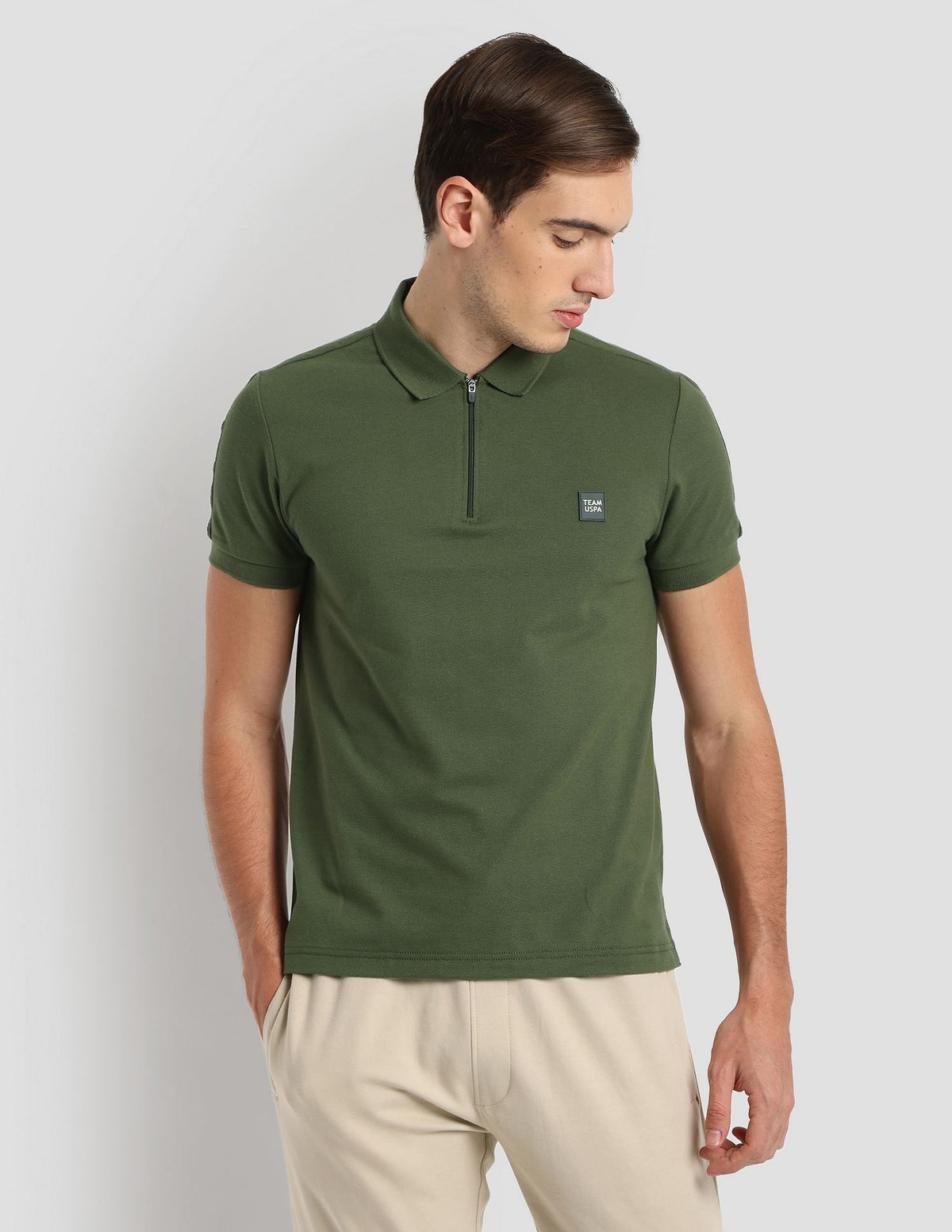 - Ribbed polo collar