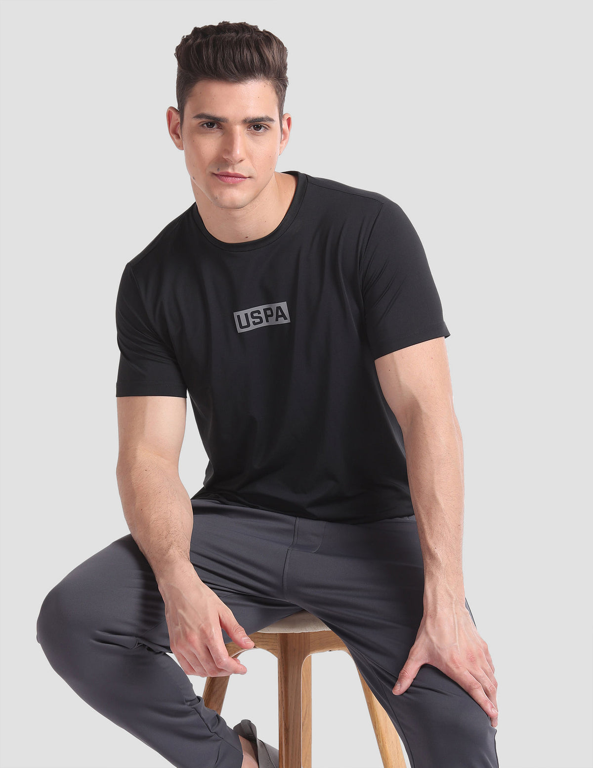 - Polyester blend t-shirt ensuring effortless movement and comfort, moisture wicking