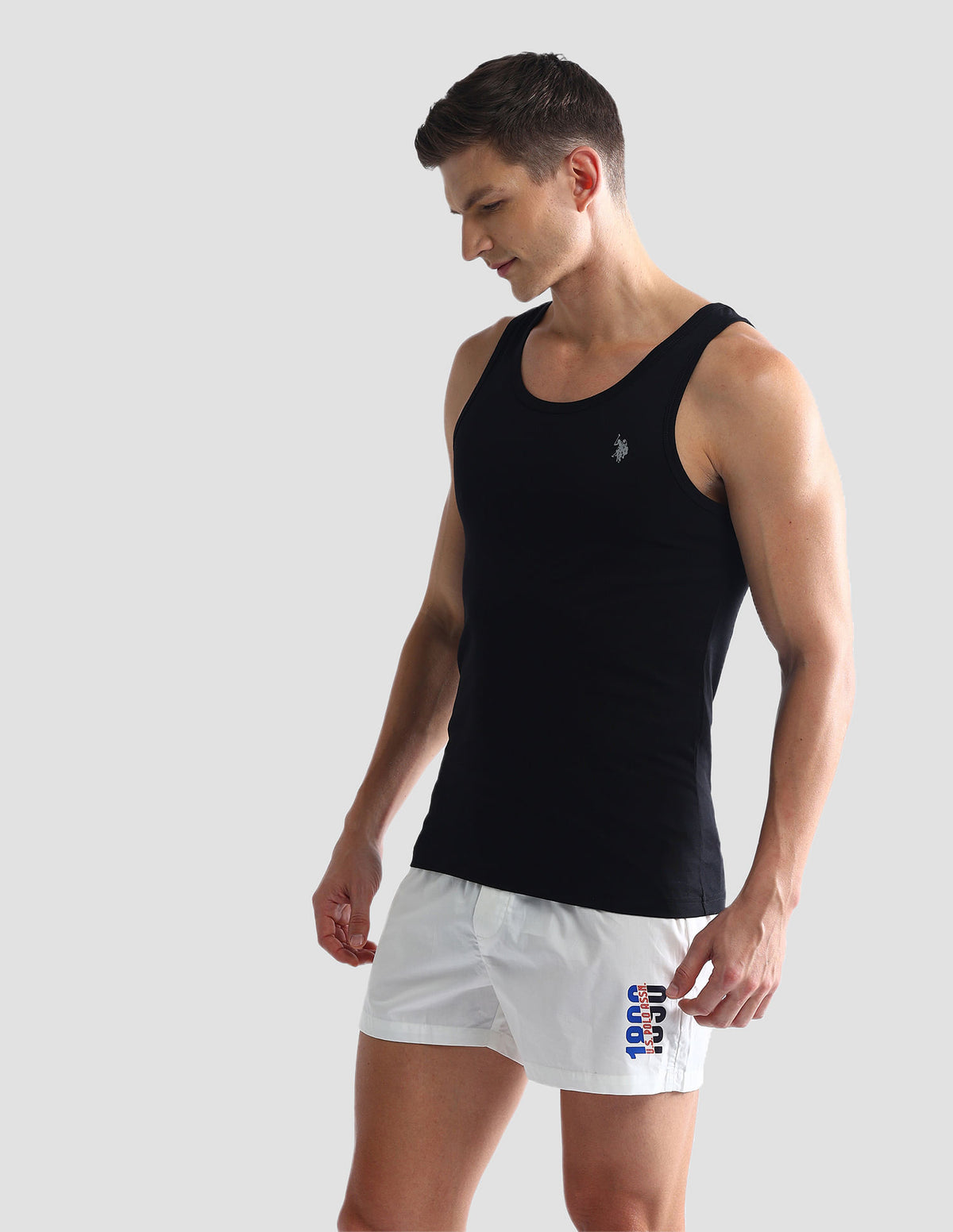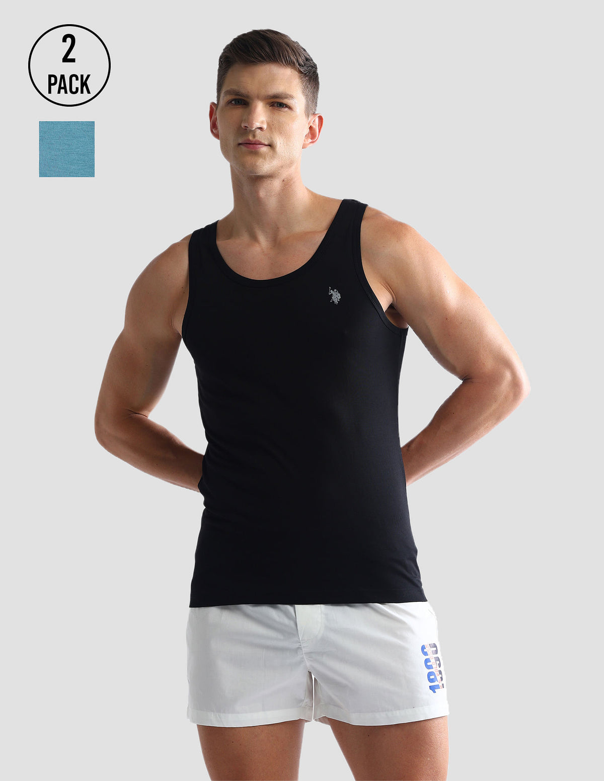 | Pack of 2: | Round neck for an elevated look | Sleeveless for easy movement | Reinforced neck and armholes ensure better grip and shape retention that withstands repeated wash and wear | Premium fine combed cotton fabric with good absorbency and breathability | Solid pattern with embroidered logo at chest for classic indoor-outdoor wear | Knitted construction ensures better stretch and durability | Comfort fit for all-day wear | Country Of Origin - India