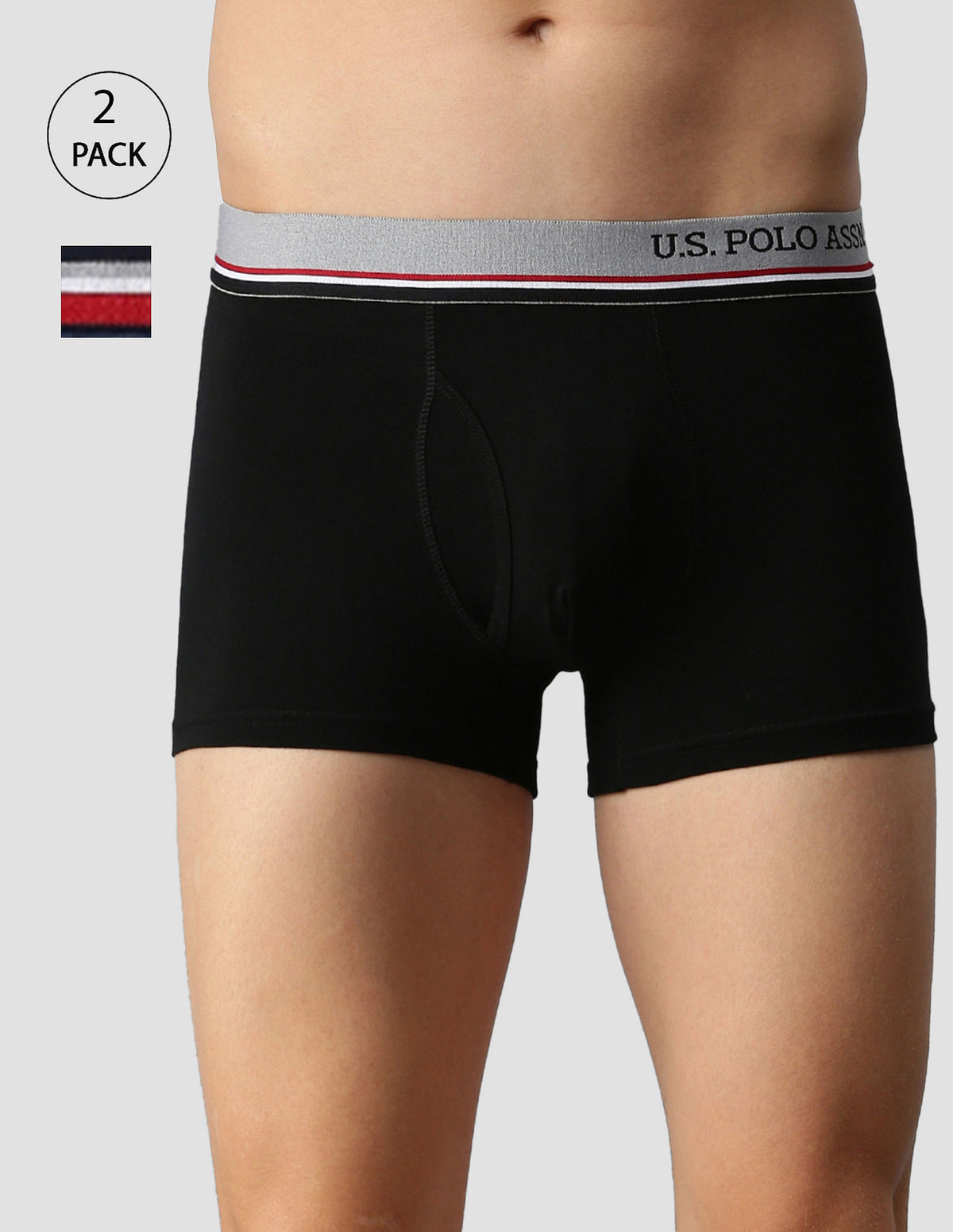 Story: This pack of two trunks are made from soft cotton blend fabric and is finished with a soft elasticized waistband that won't flip or pinch and will make a sound addition to your underwear drawer.