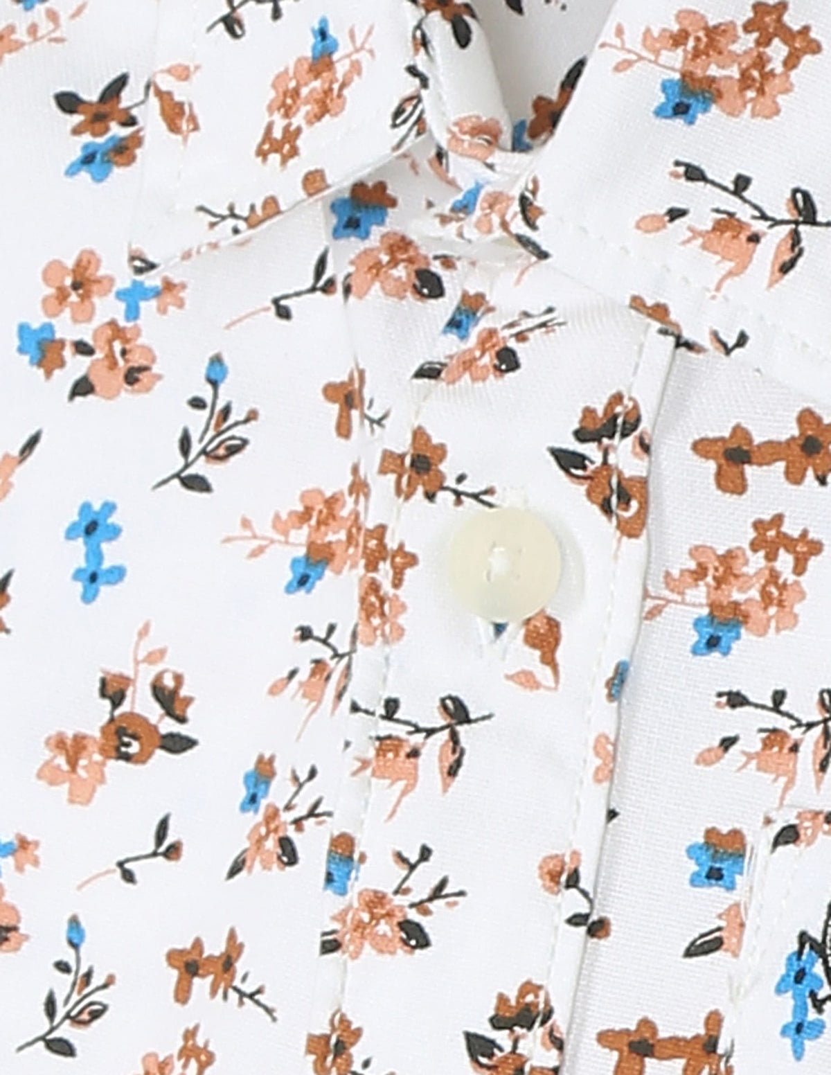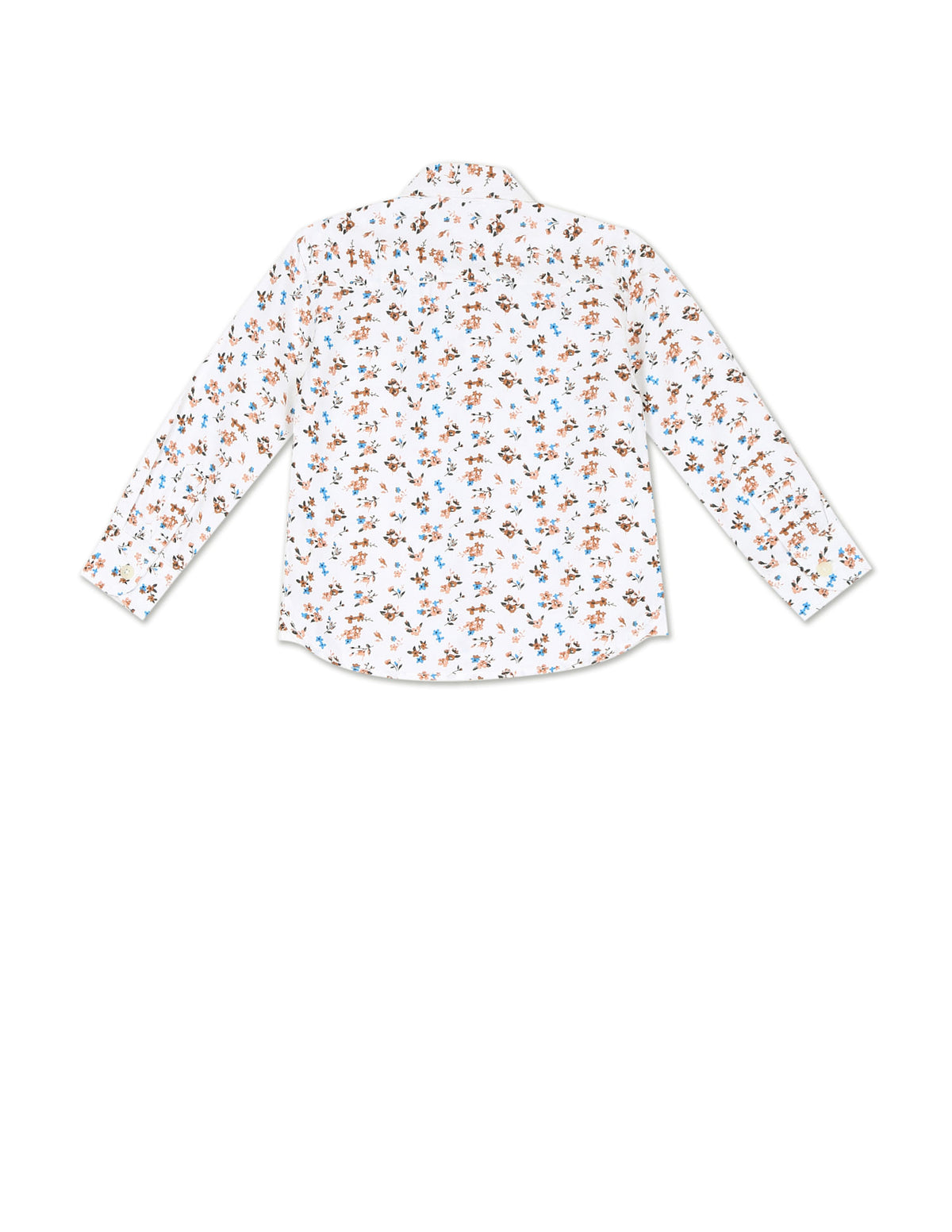 | Spread collar | Chest patch pocket | Full button placket | Long sleeves with rounded cuffs | Curved hemline | Logo at chest | Printed - Summer Heroes