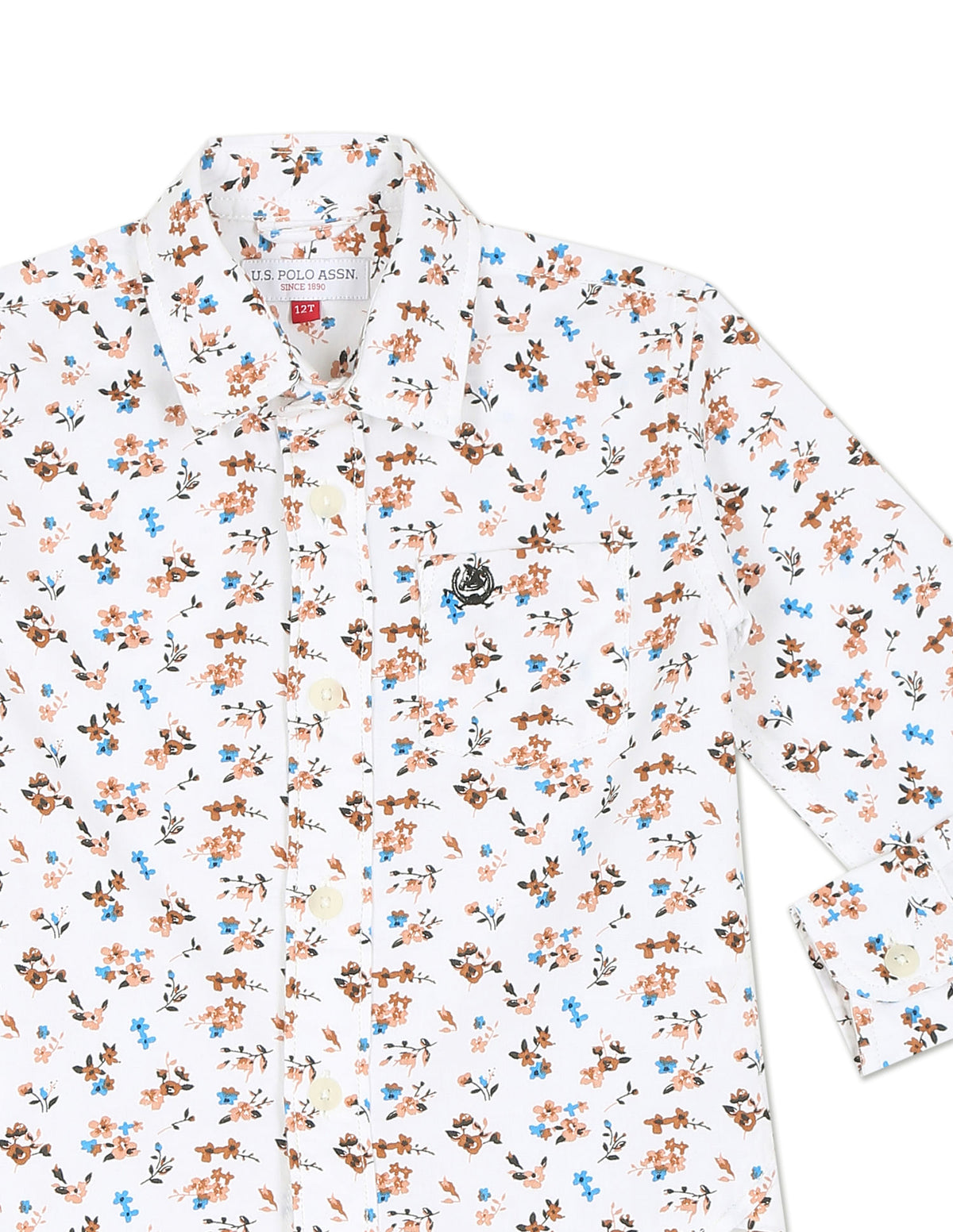 Story: This shirt by U.S. Polo Assn makes a fun addition to your little man's wardrobe and features a spread collar, long sleeves with rounded cuffs and a curved hem.
