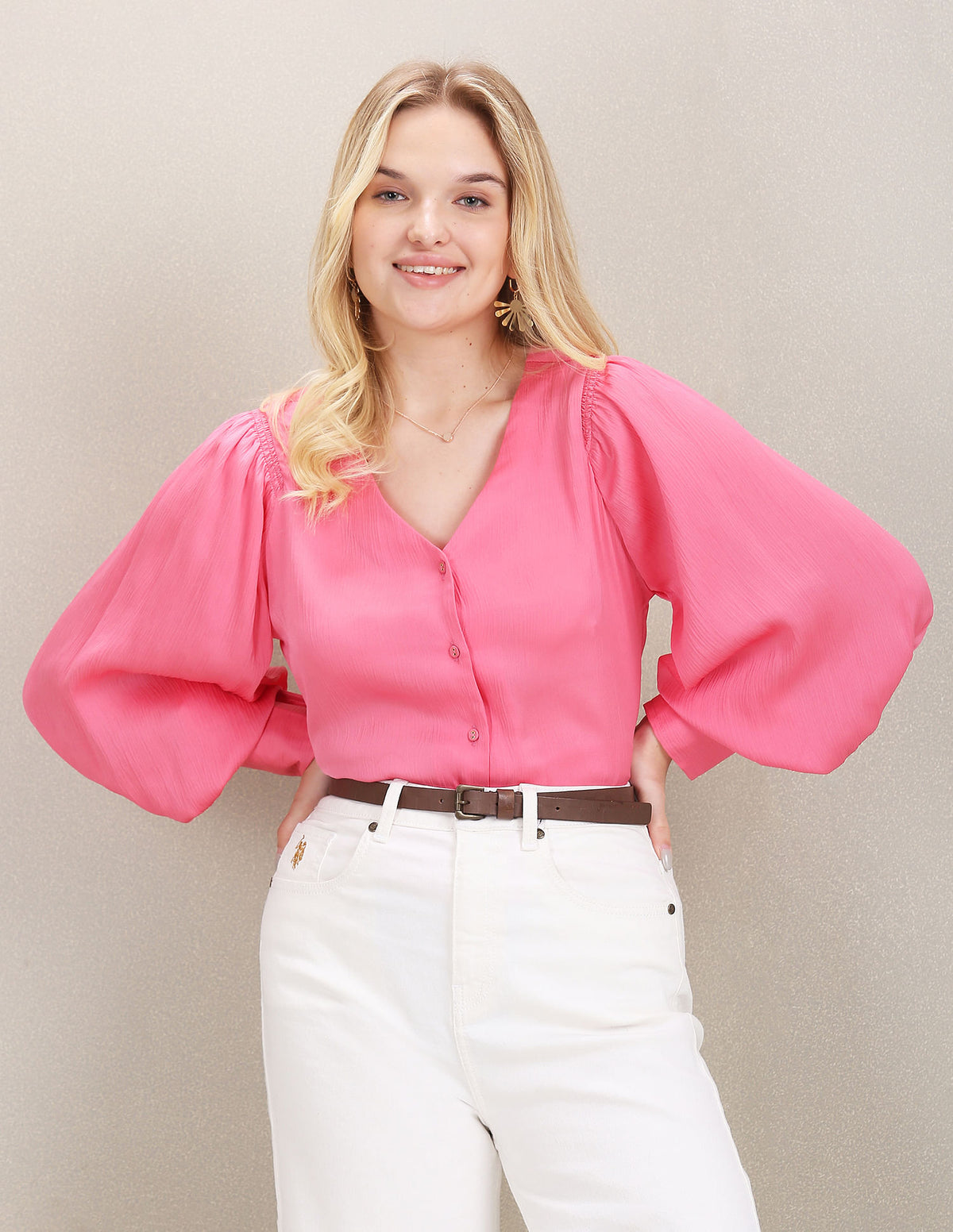 - Long sleeves with barrel cuffs