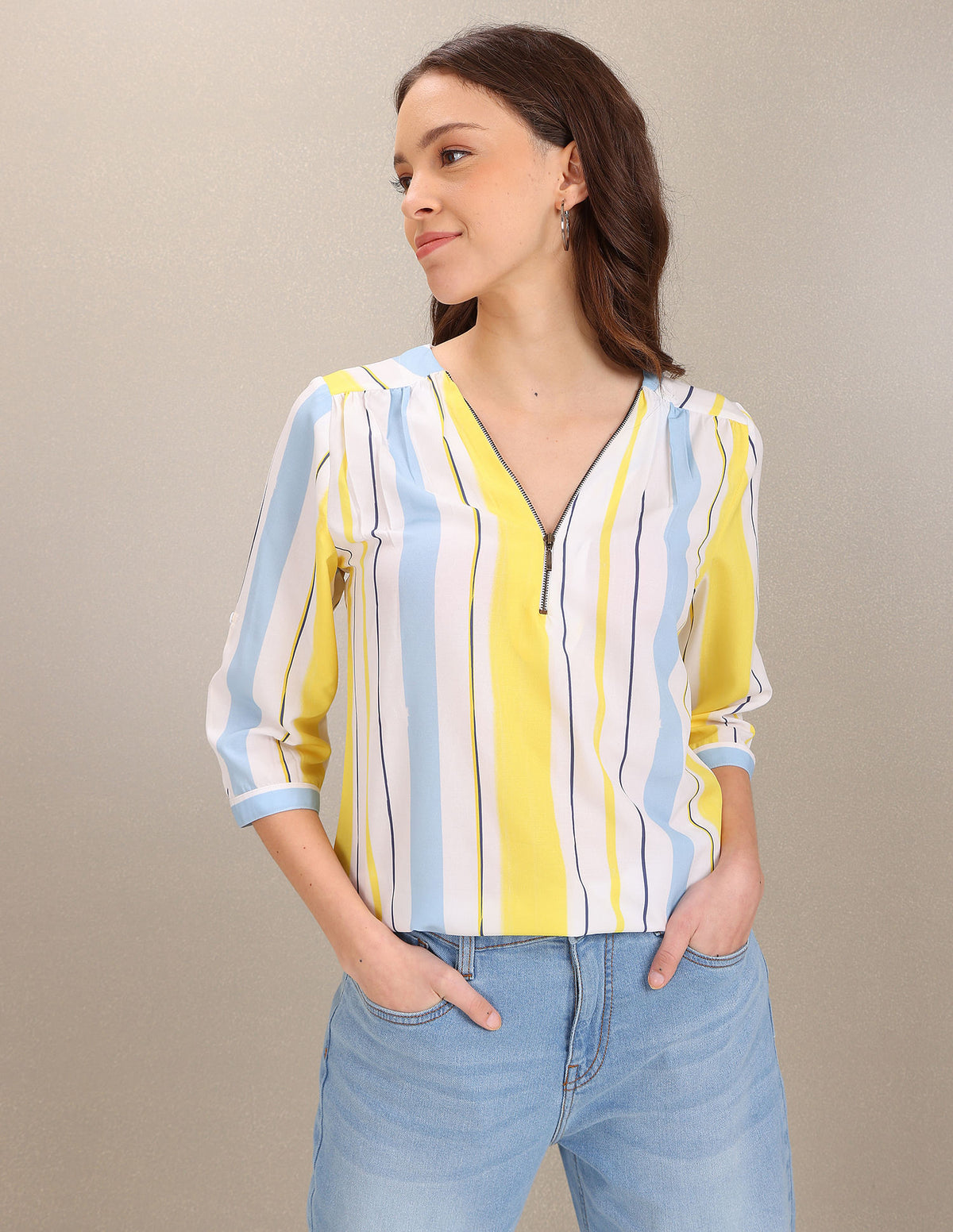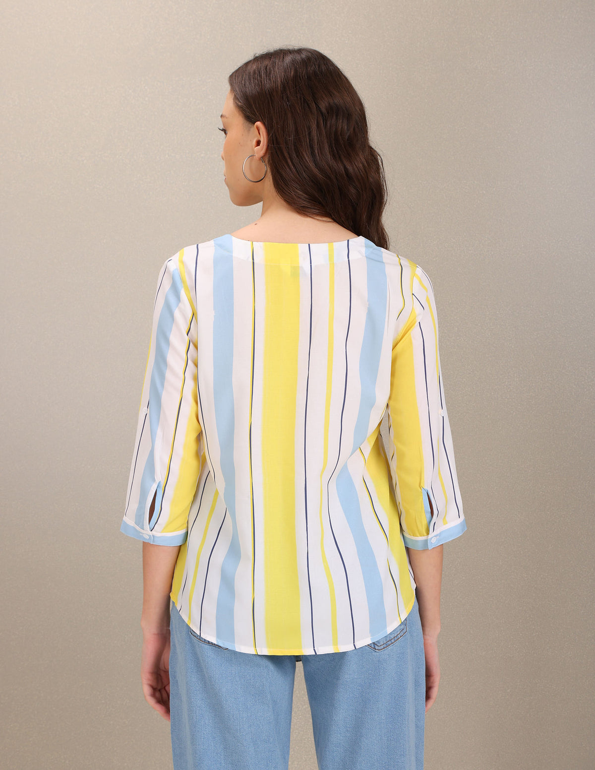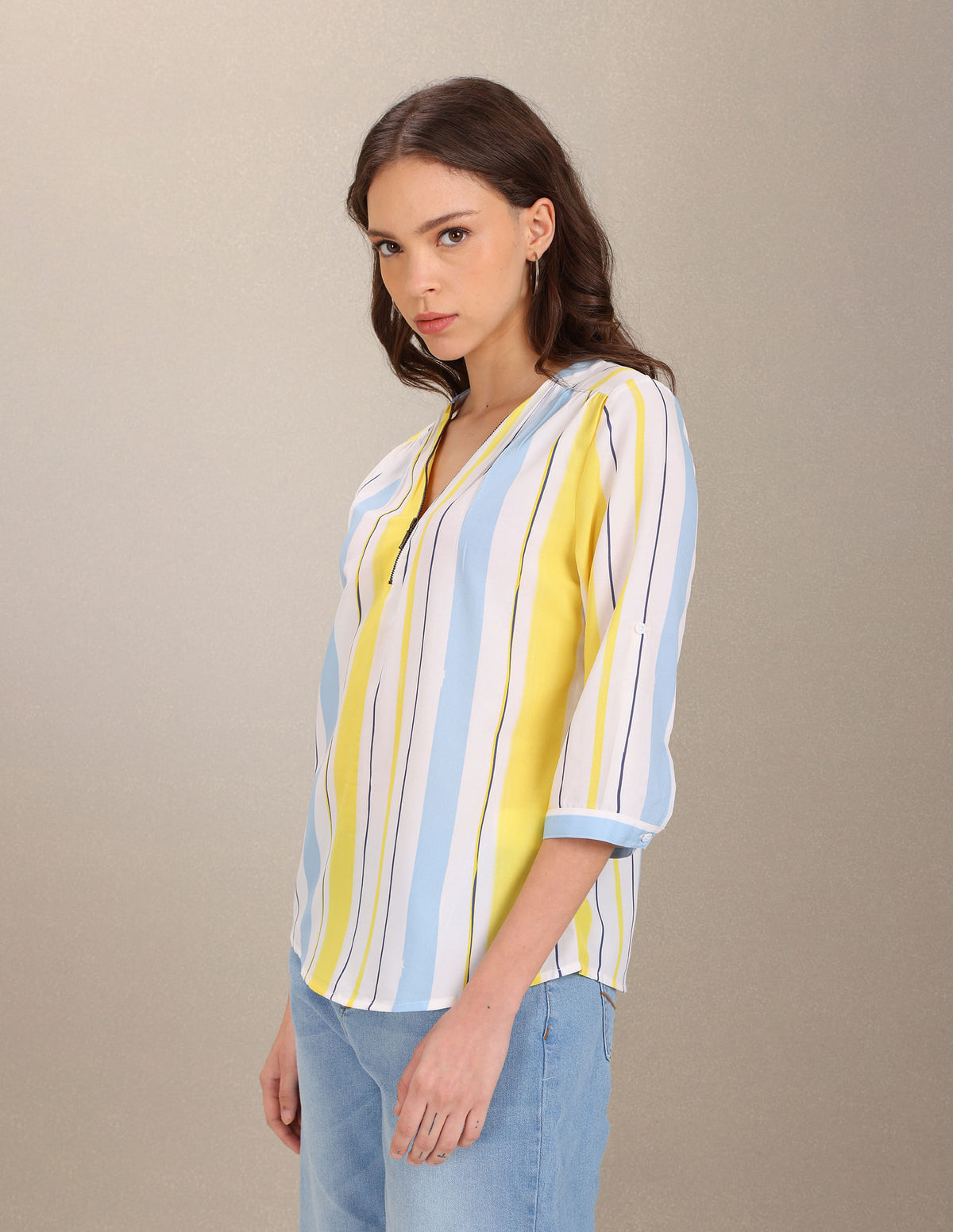 Story: This top will make a sound addition to your line-up of casuals with its fluid fabric allowing breathability and comfort while a v-neckline completes the design.