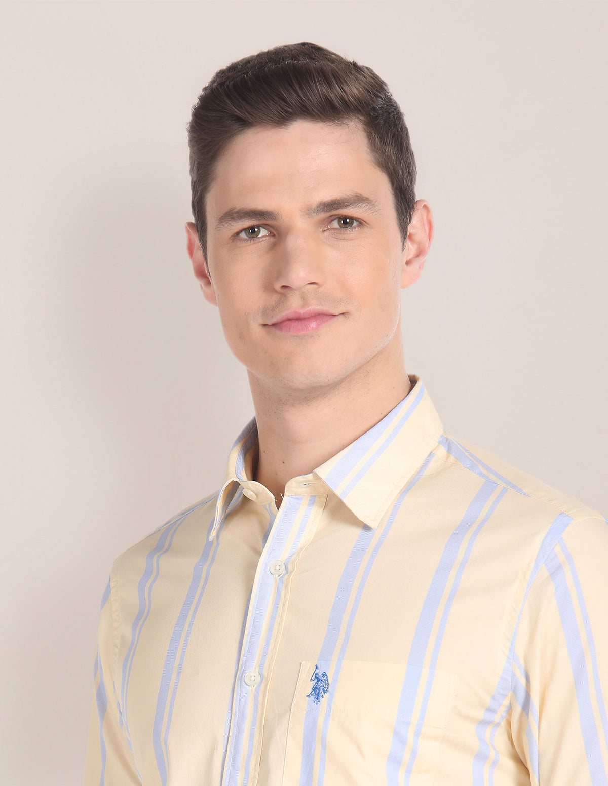 Story: This casual shirt features a cutaway collar and full button placket and is a great pick for a day party or an evening out.