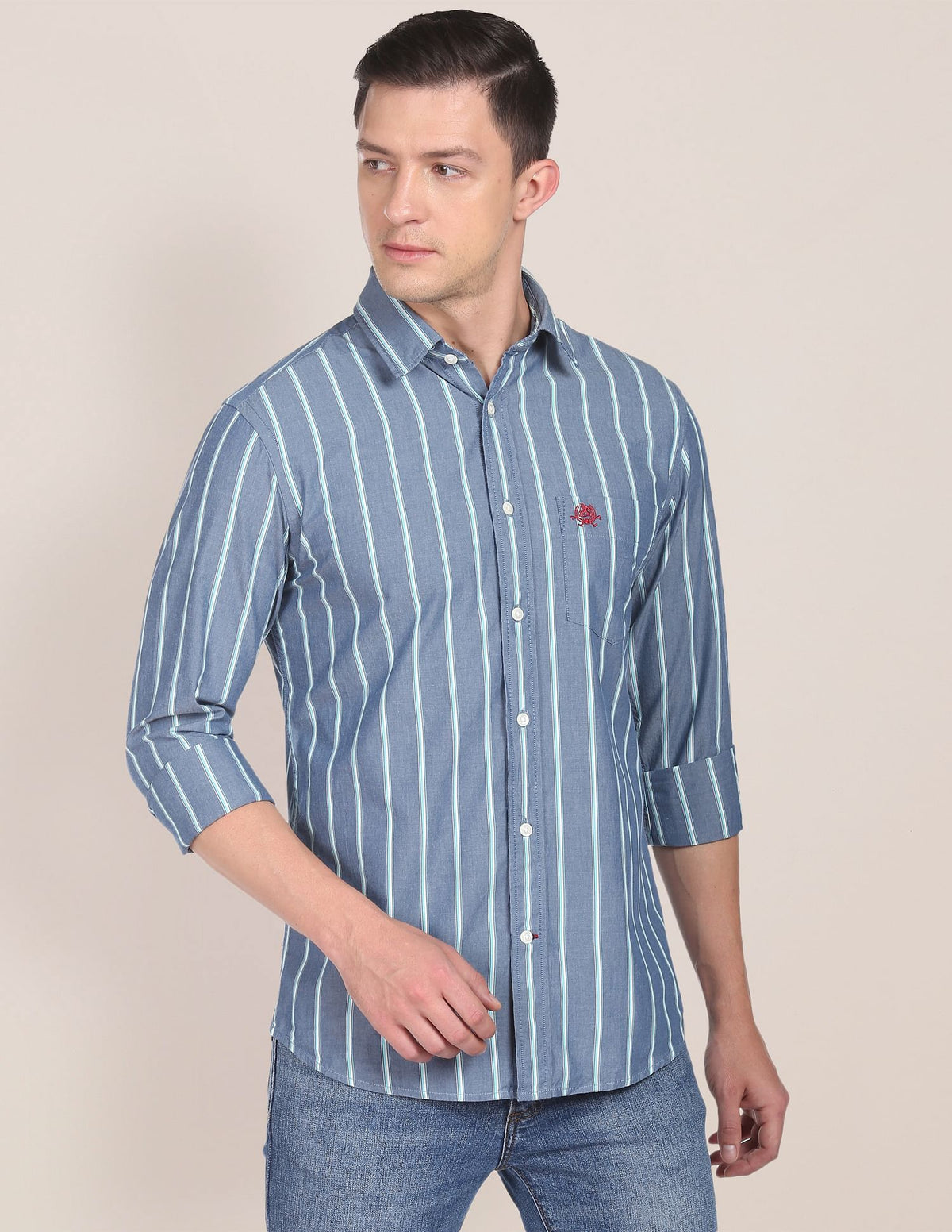 Vertical Stripe Pinpoint Oxford Casual Shirt