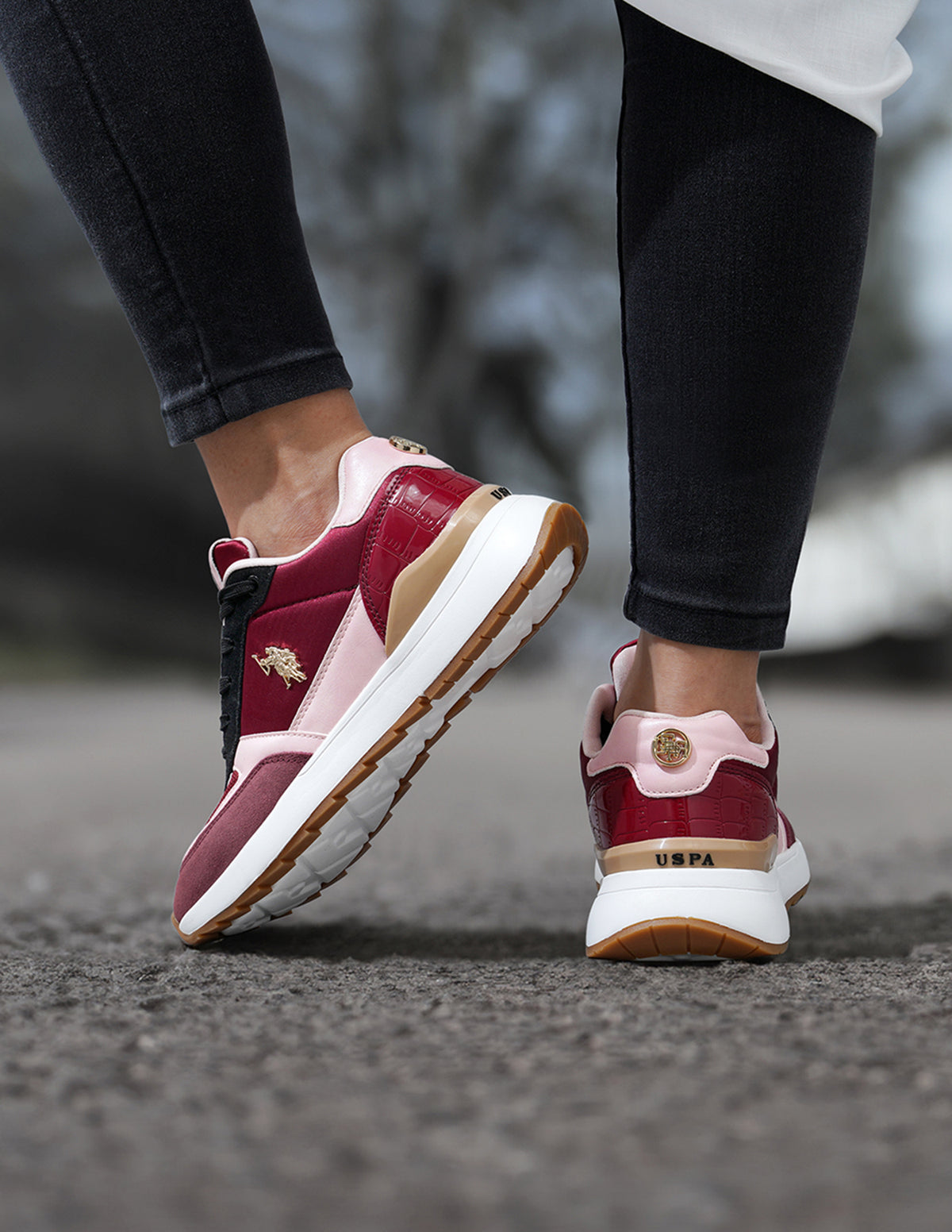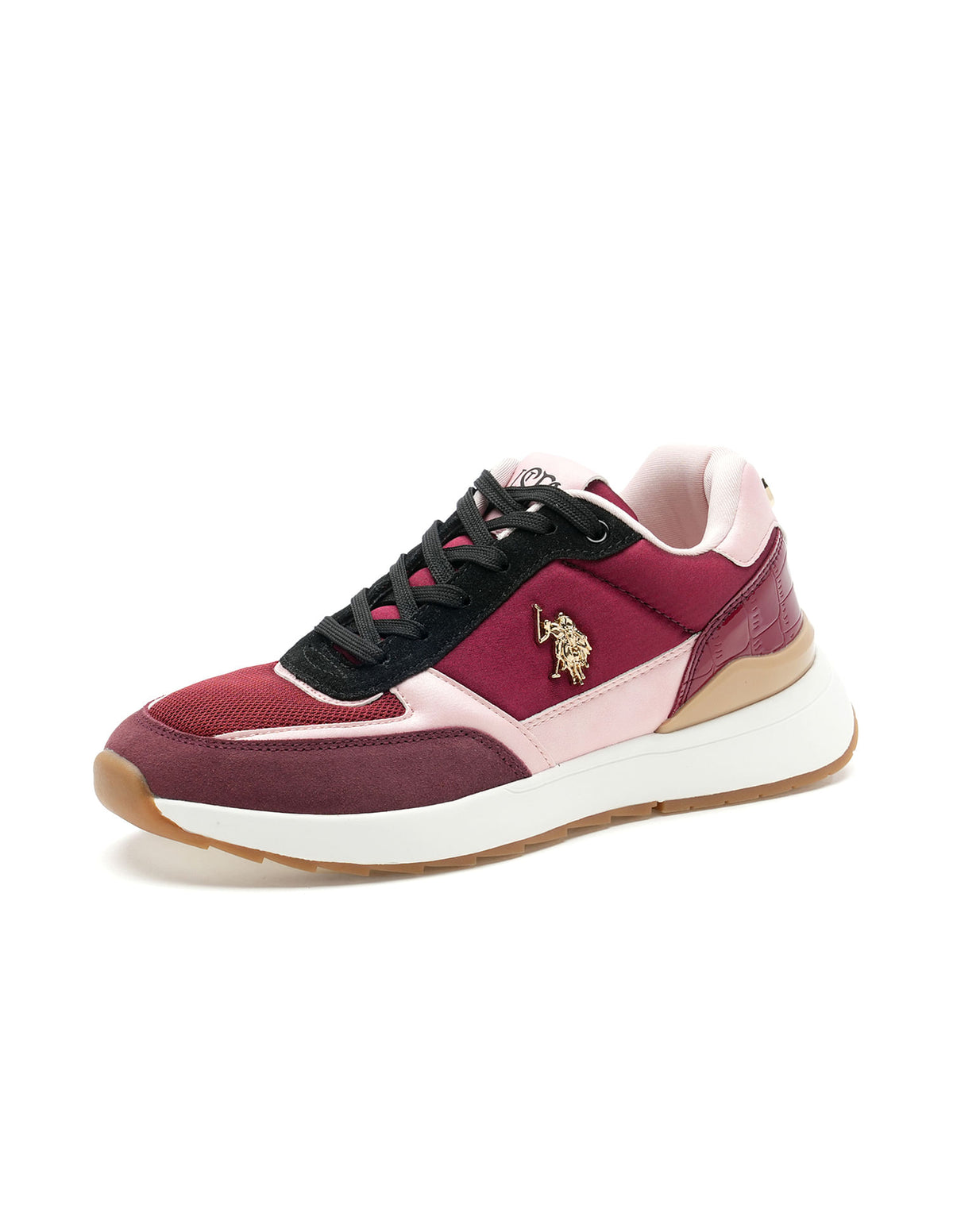 - Reinforced heel counter with metallic monogram