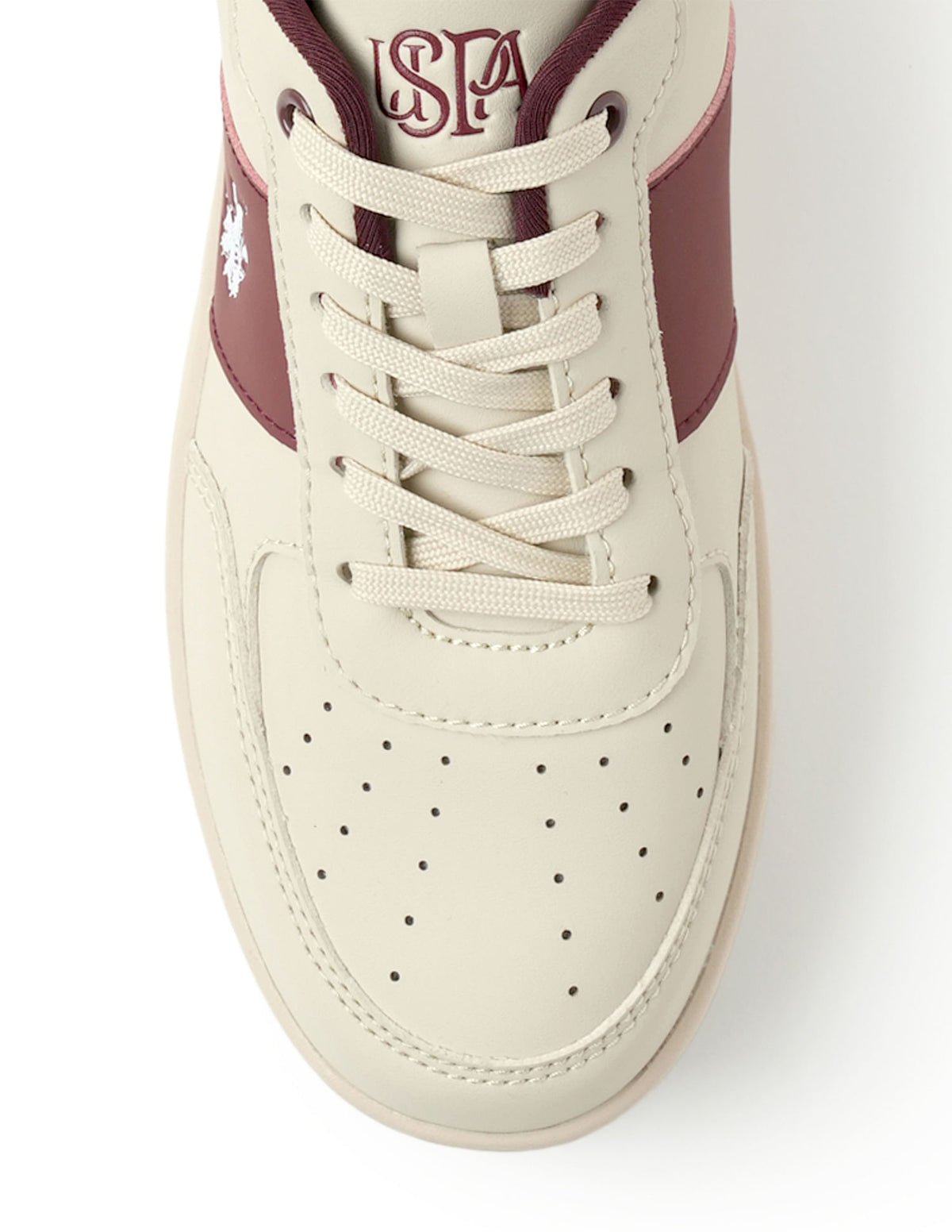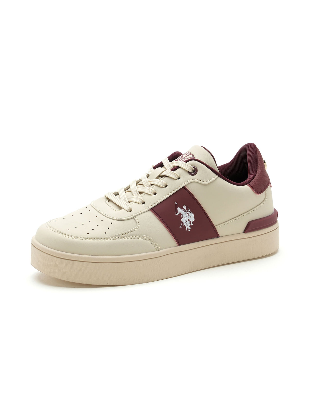 - Reinforced heel counter with metallic monogram