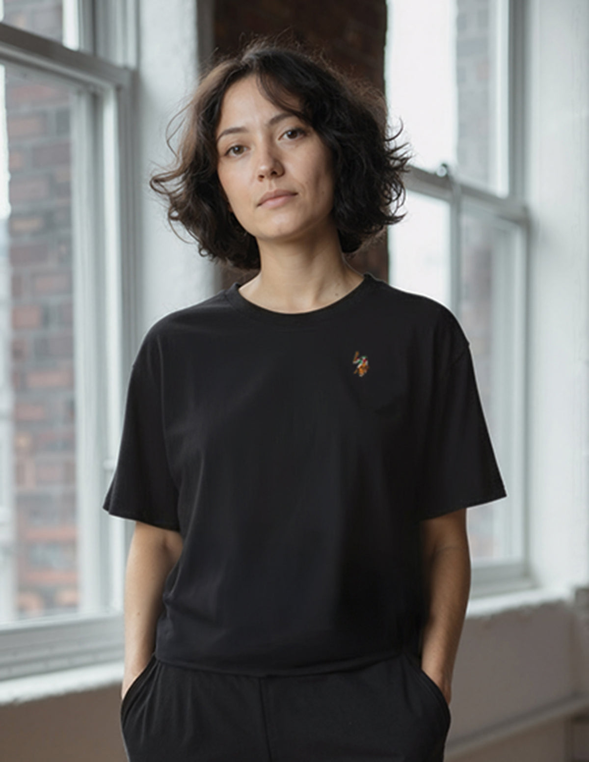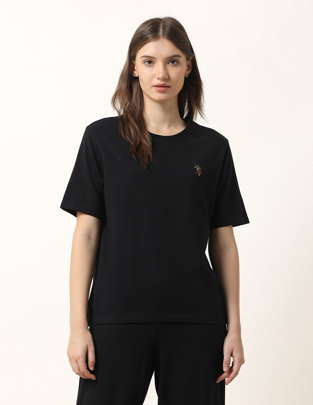 | Ribbed crew neck | Embroidered logo at chest | Short sleeves | Straight hemline | Solid pattern | Knitted | Boxy fit |