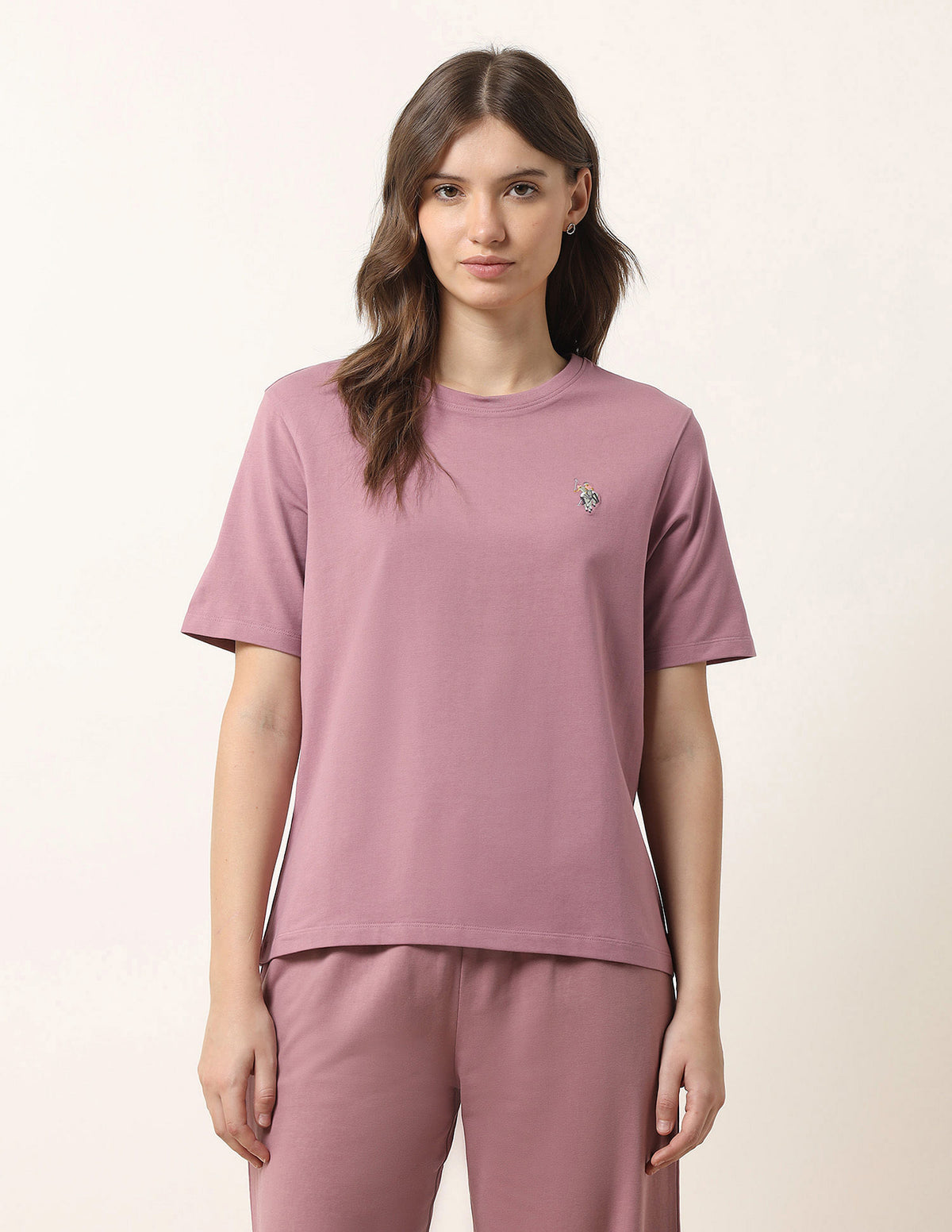 | Ribbed crew neck | Embroidered logo at chest | Short sleeves | Straight hemline | Solid pattern | Knitted | Boxy fit |
