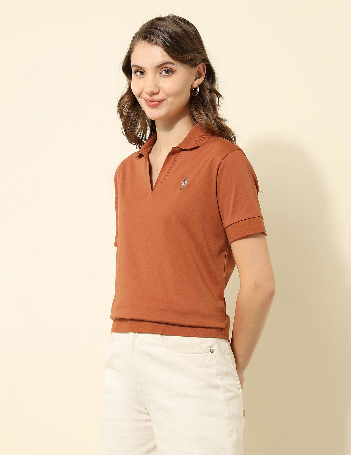 | Polo collar | Open placket | Logo at chest | Short sleeves | Ribbed collar and sleeve hems | Ribbed hem | Solid pattern | Pique knit | Boxy fit |