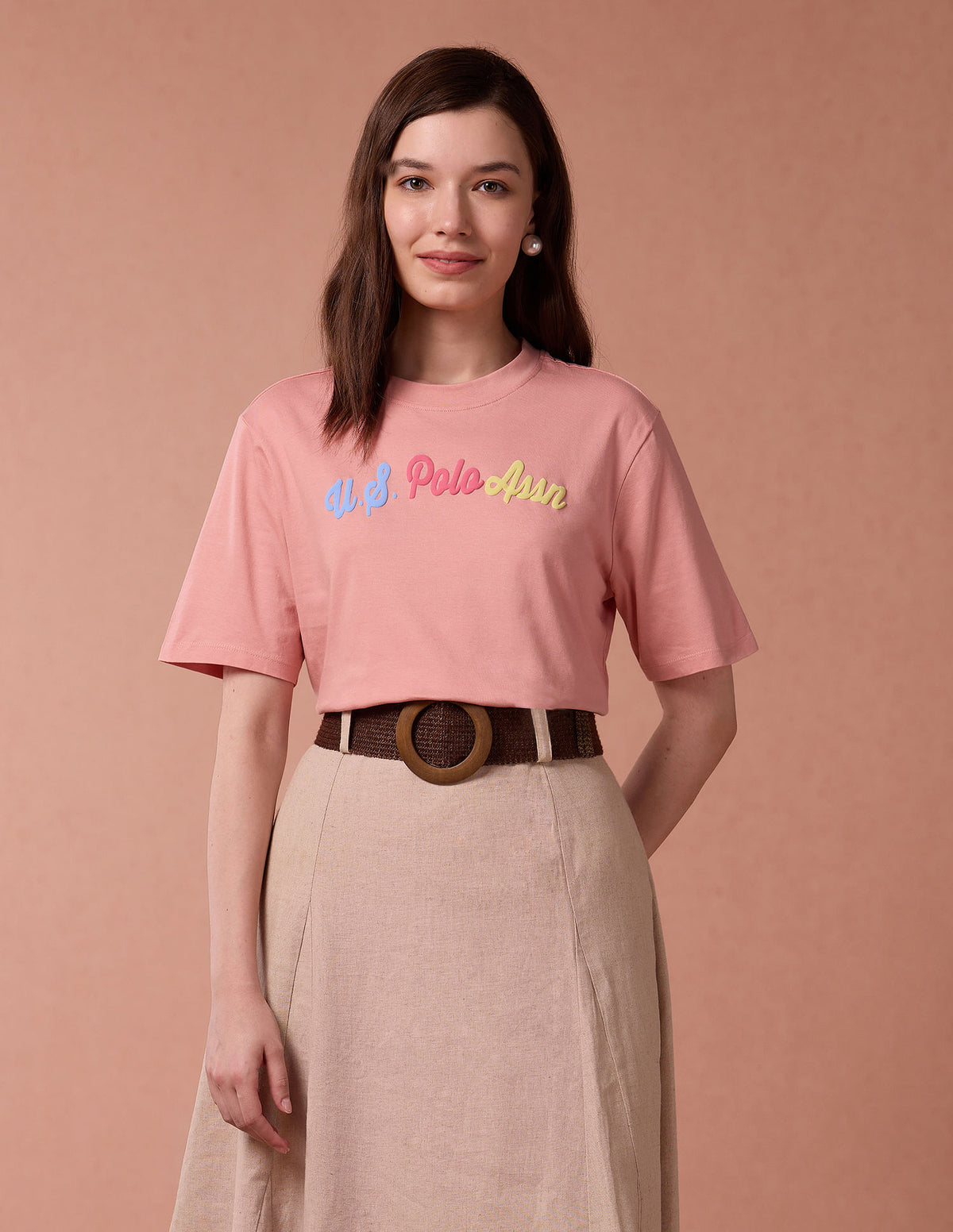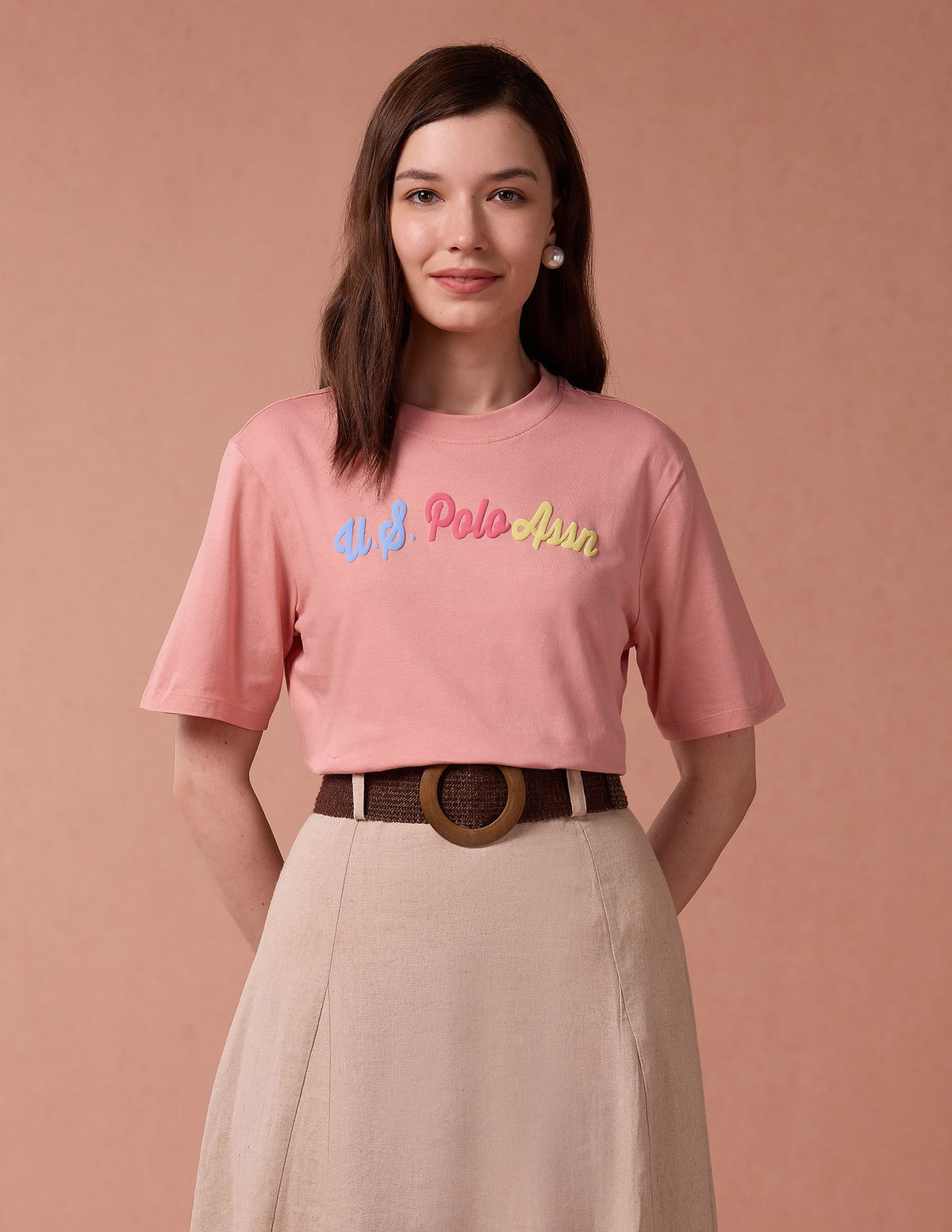 | Ribbed crew neck | Short sleeves | Straight hem | Brand printed pattern | Single jersey knit | Oversized fit |