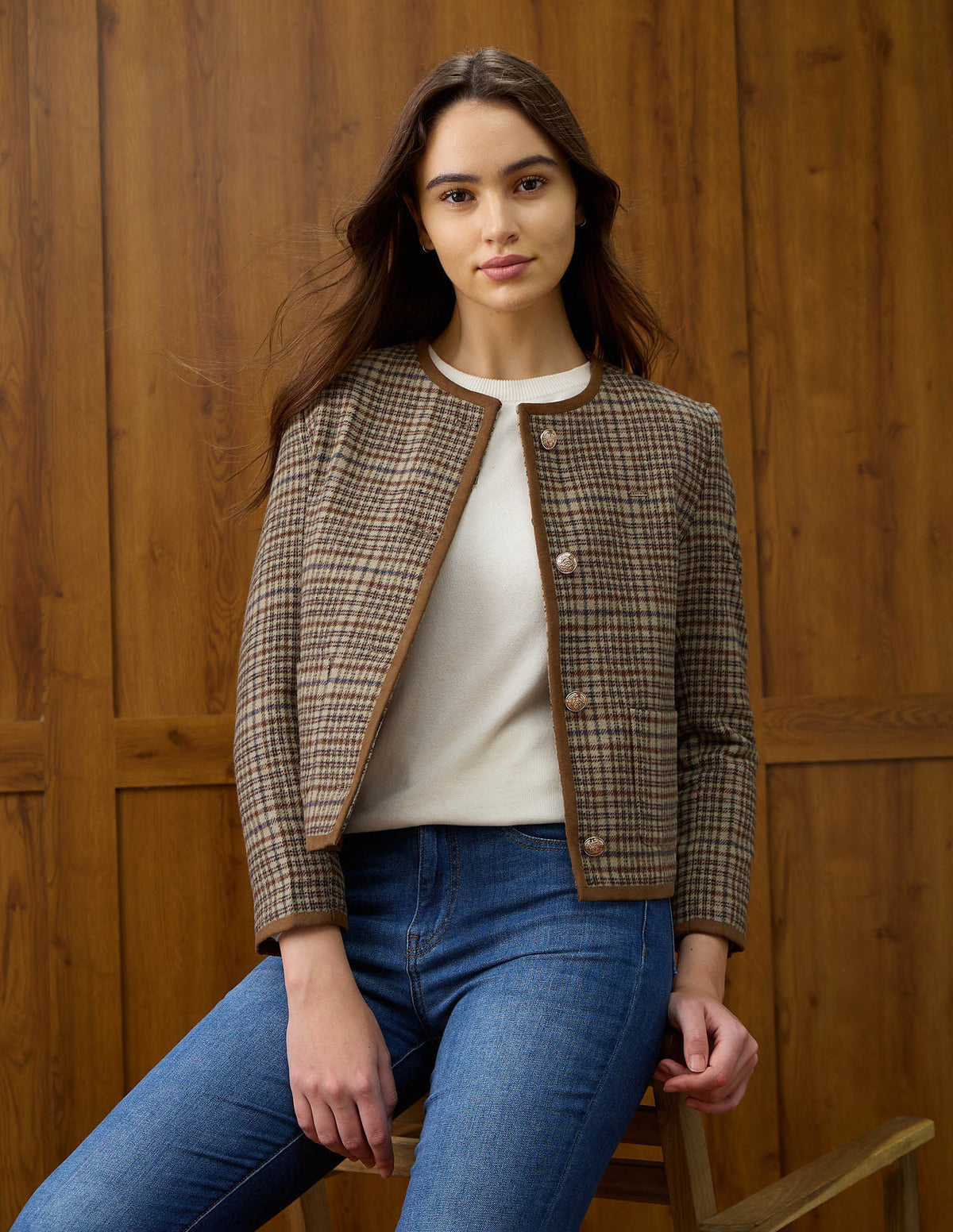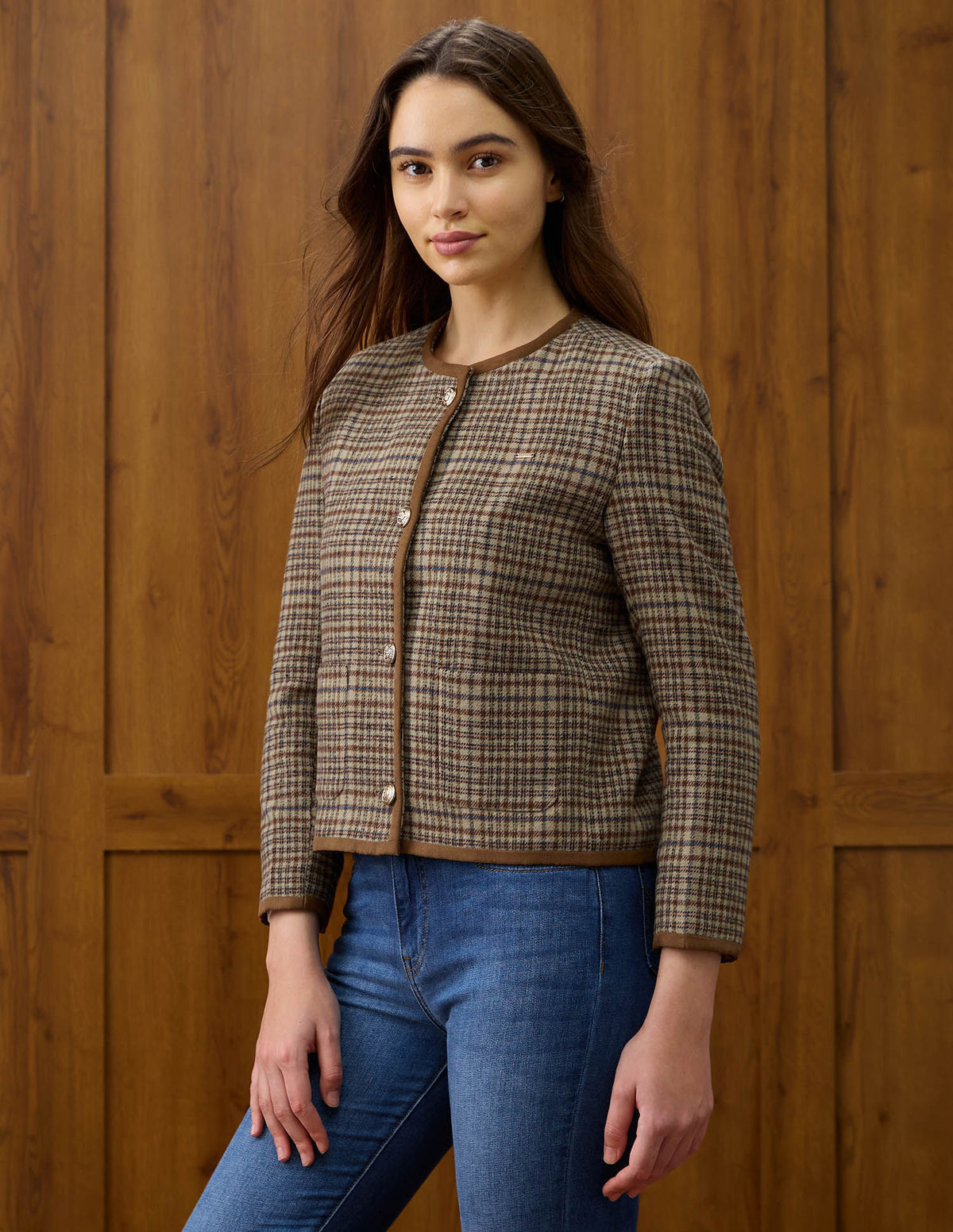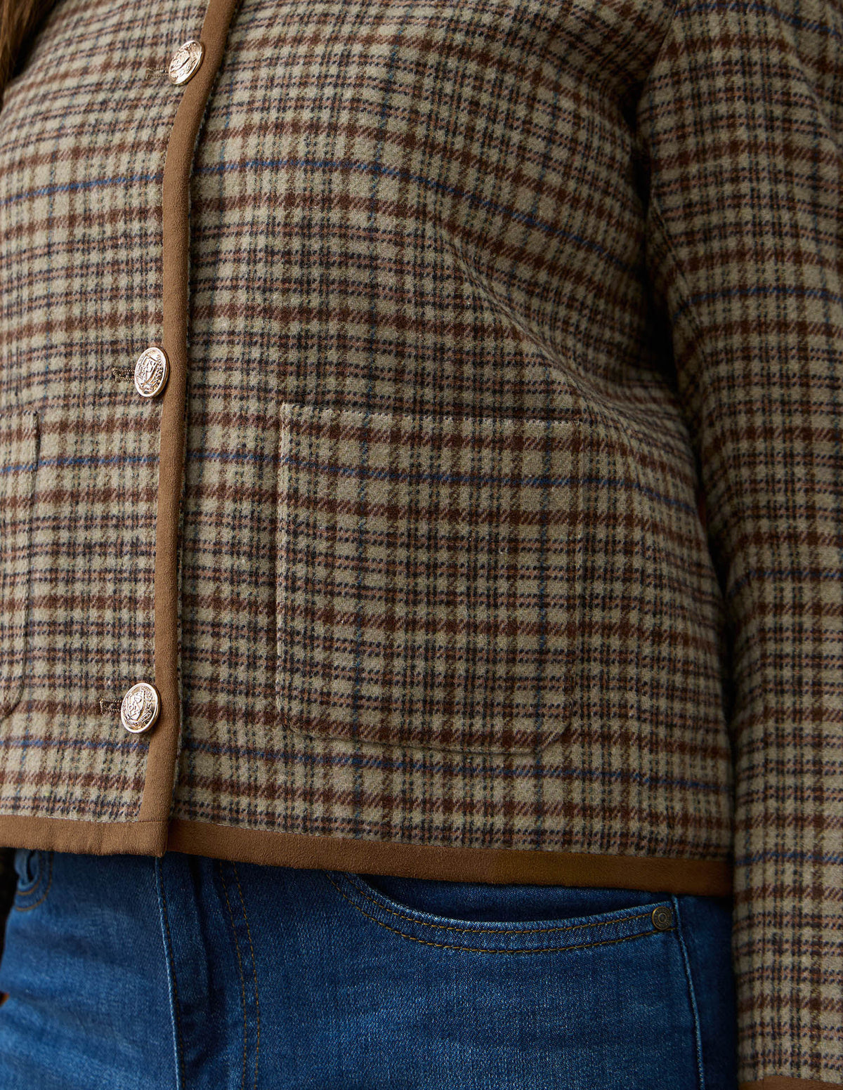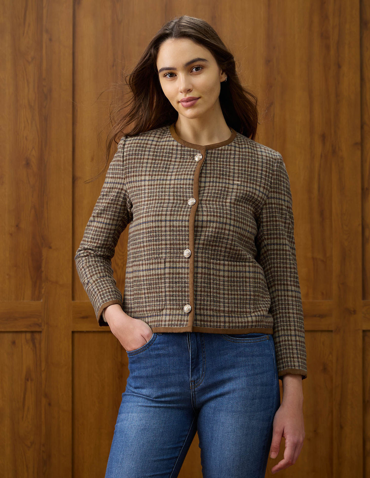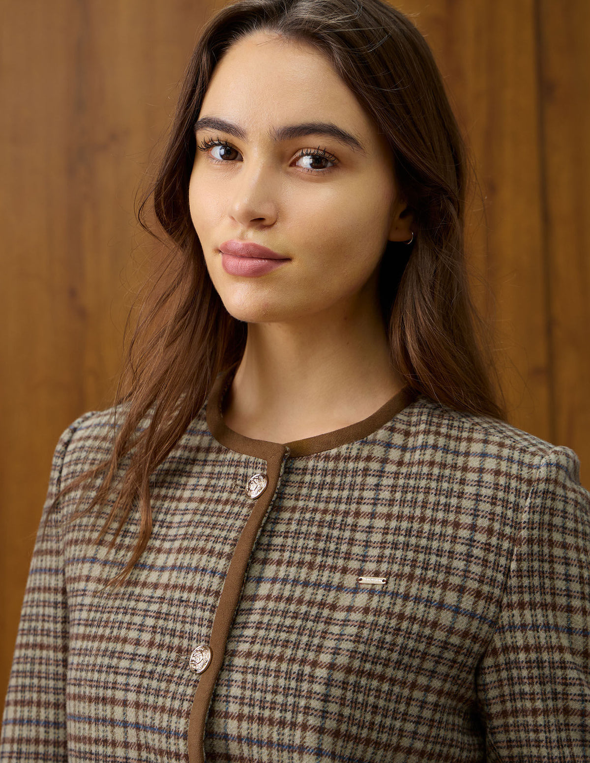 | Round neck | Button closure | Long sleeves | Elasticized sleeve hems and hemline | 2 pockets | Checked pattern | Regular fit |
