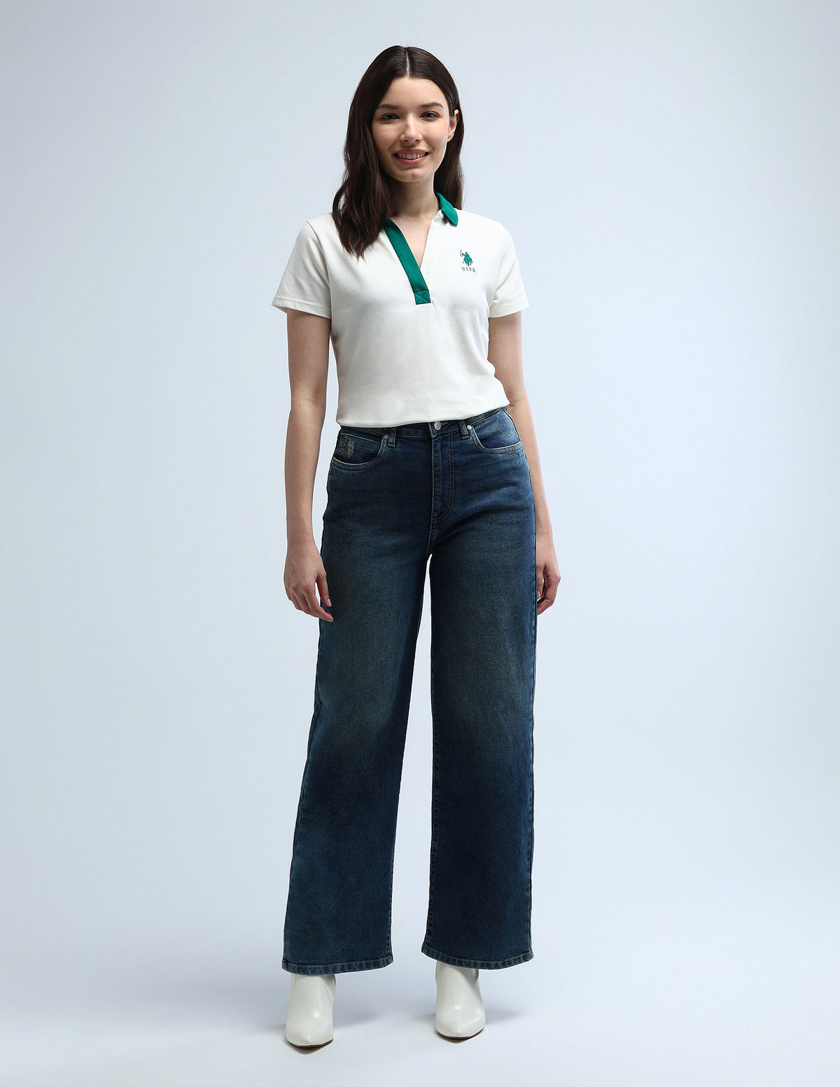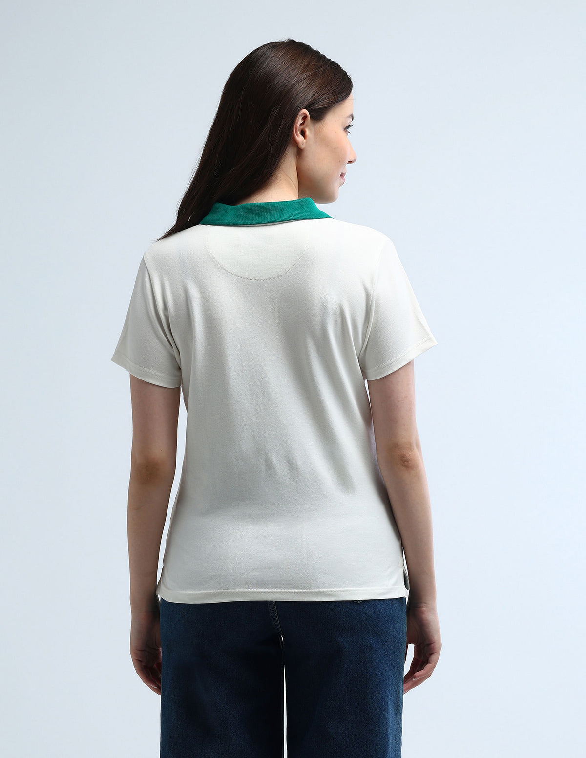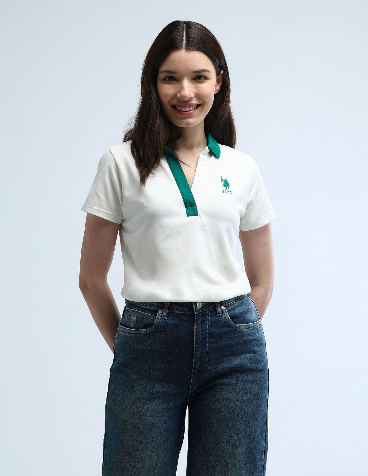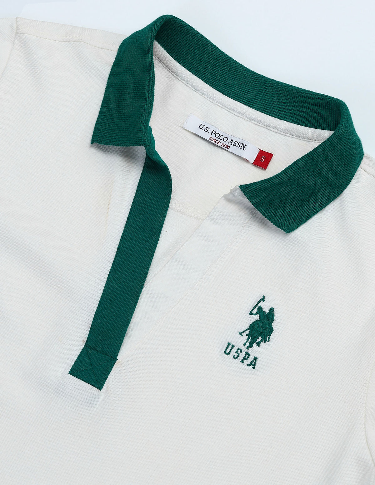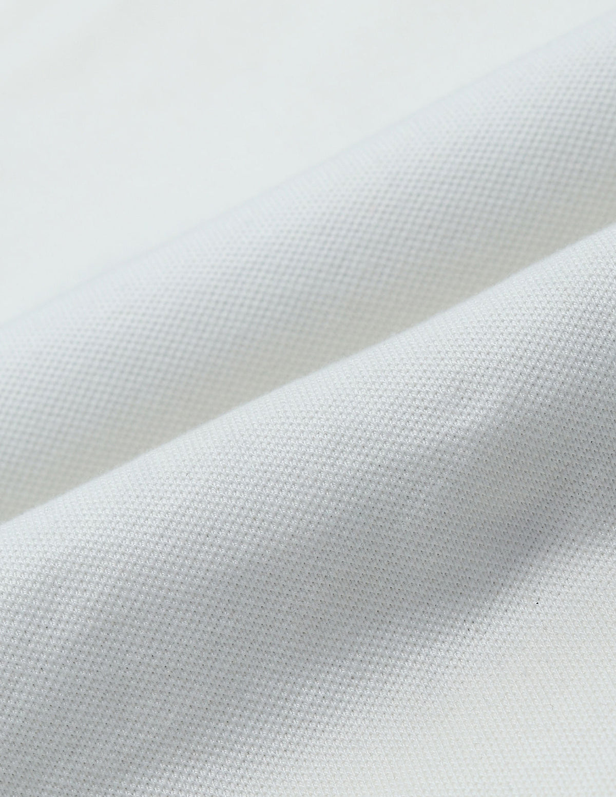 | Polo collar | Logo at chest | Open placket | Short sleeves | Ribbed collar and sleeve hems | Contrast collar and placket | Uneven vented hem | Solid pattern | Pique knit | Oversized fit