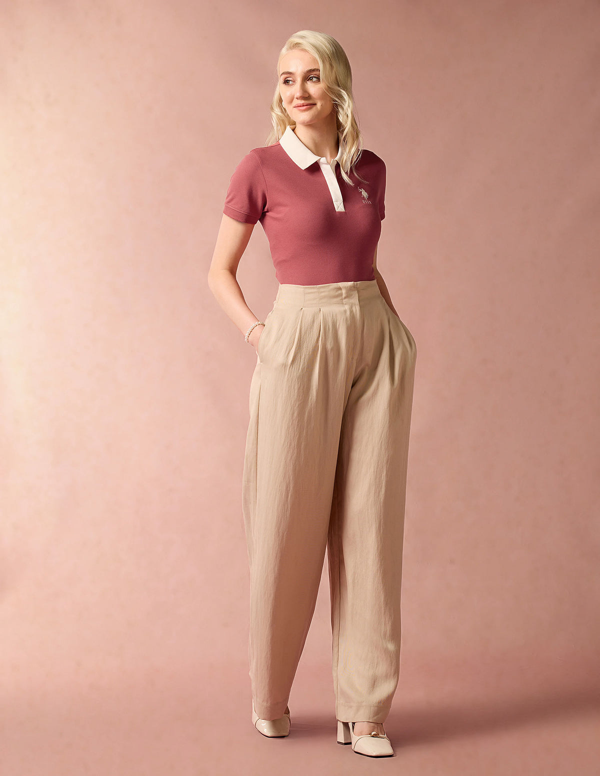 Story: The Victorian Reverie range brings classic styles to life with a hint of Victorian elegance. Perfect for adding a touch of vintage-inspired grace to contemporary wardrobes.​ A stylish addition to your wardrobe, this polo collar tee features a logo at the chest, a short button placket, and contrast details on the collar and placket. Crafted in smooth pique knit fabric, it offers a comfortable regular fit with a straight hemline, perfect for casual yet polished outfits.