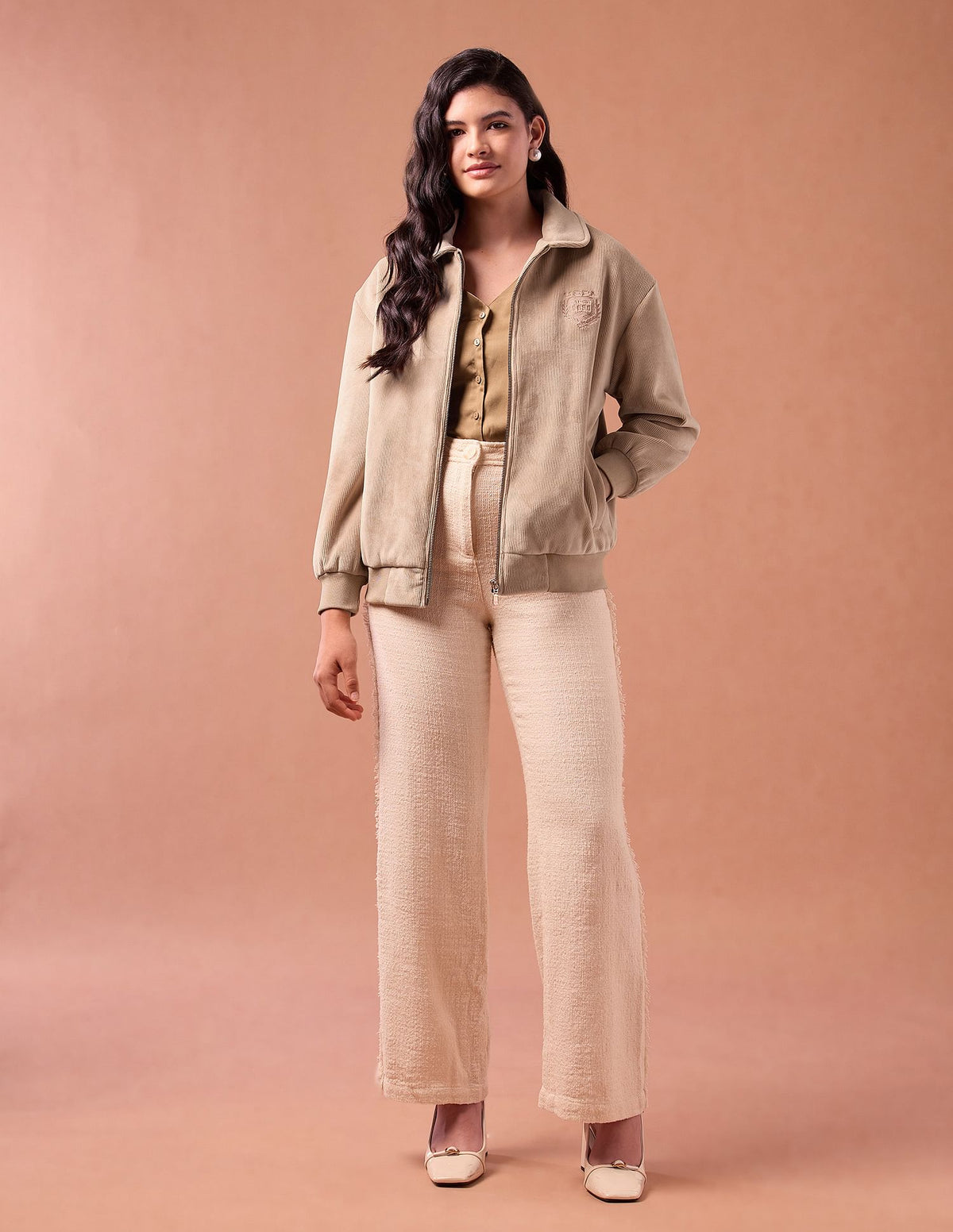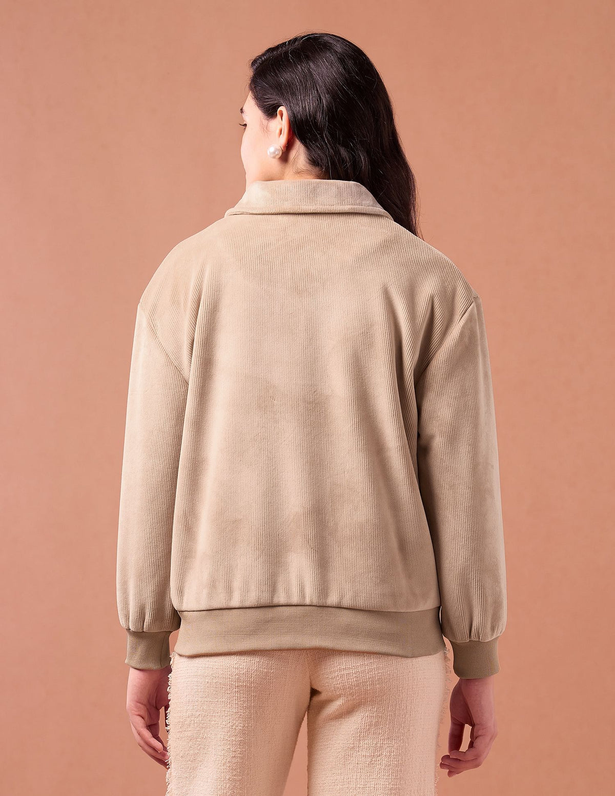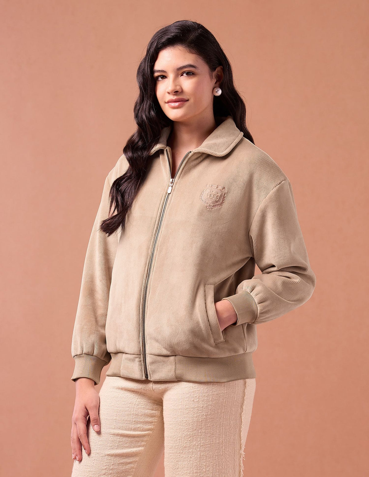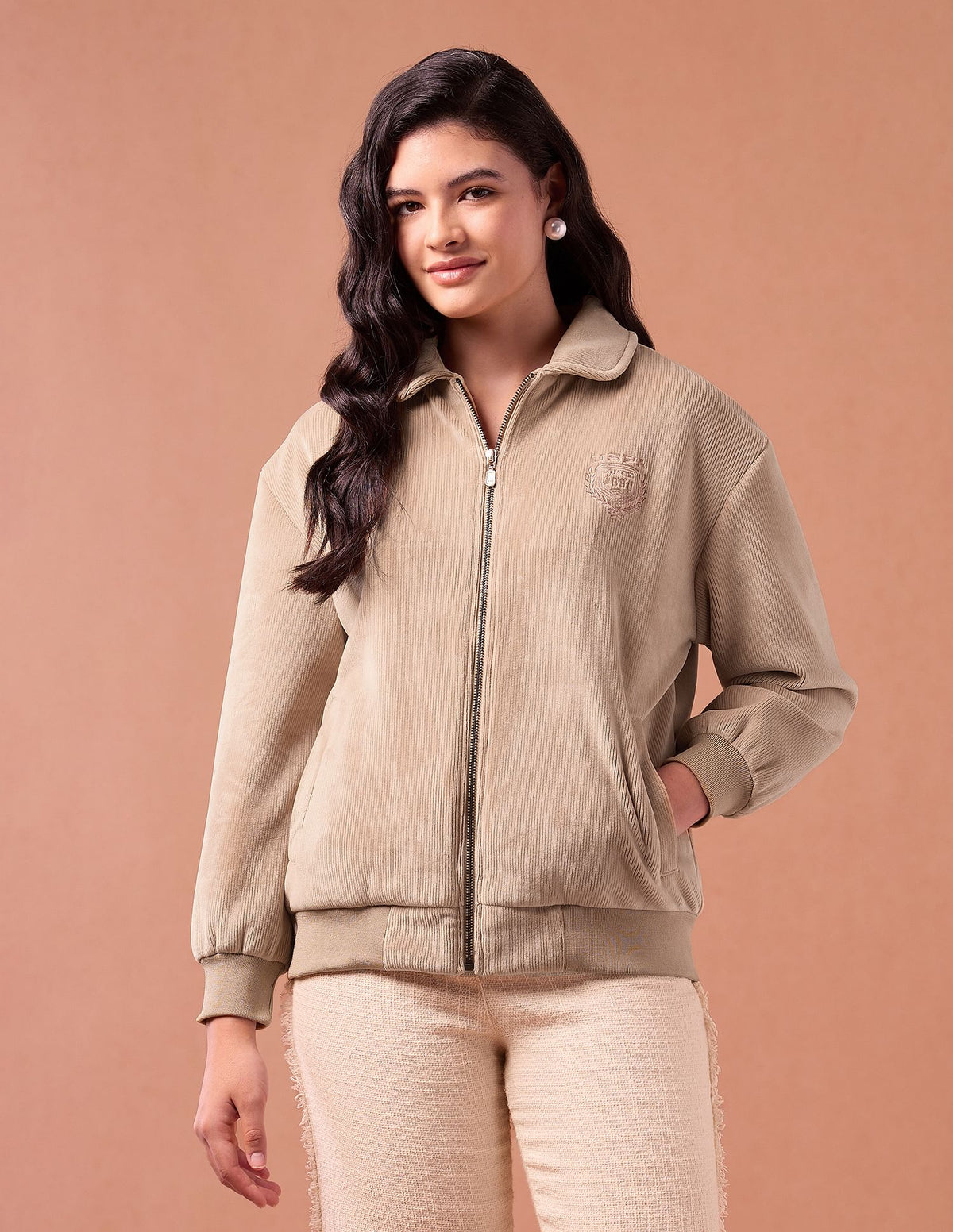 | Spread collar | Full zipper closure | Long sleeves | Logo at left sleeve | Elasticized sleeve hems and hemline | Two pockets | Solid pattern |