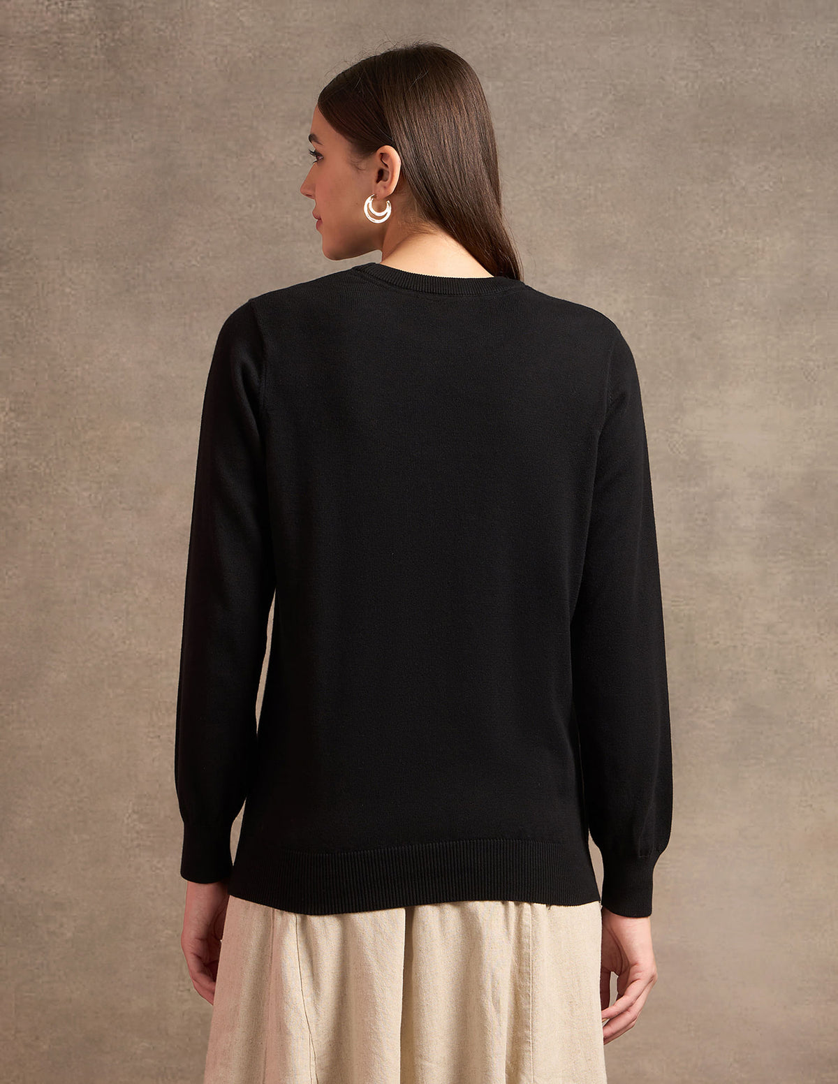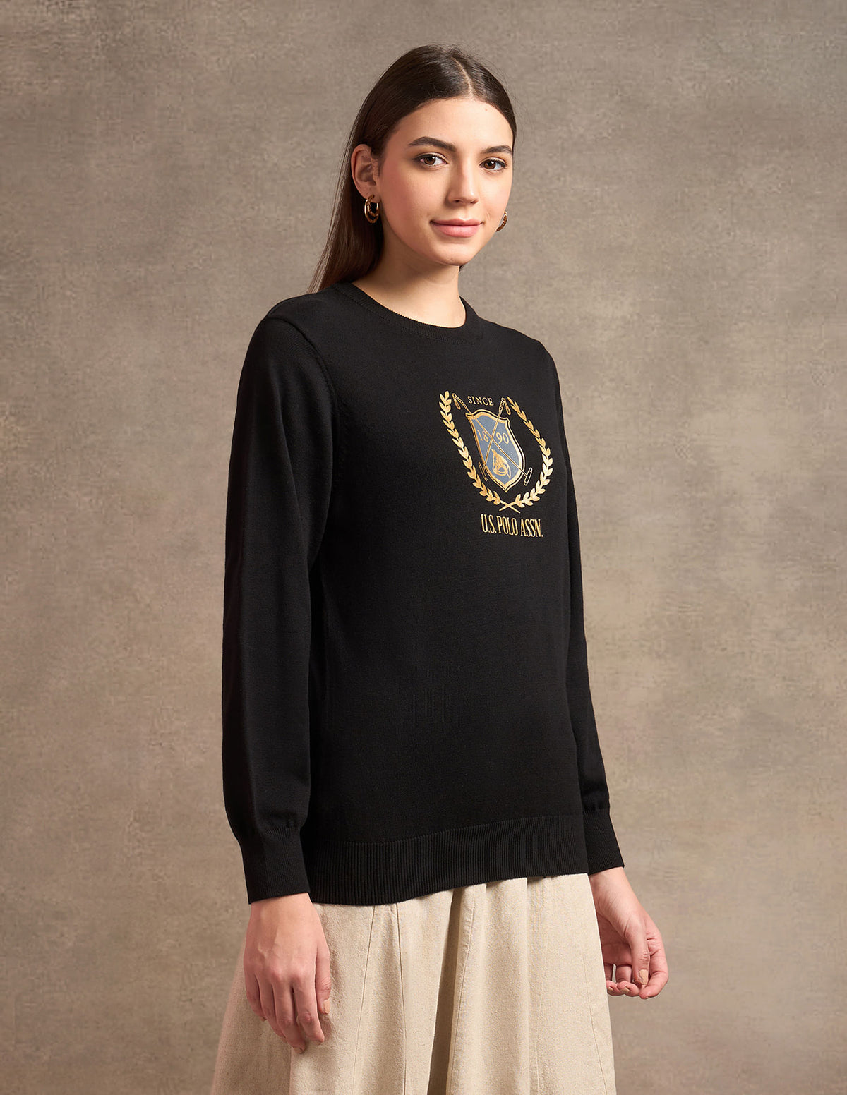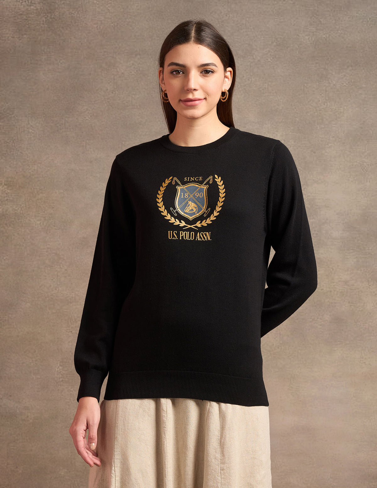 | Crew neck | Logo at chest | Long sleeves | Ribbed neck, sleeve hems and hemline | Solid pattern | Knitted | Regular fit | Country Of Origin - India
