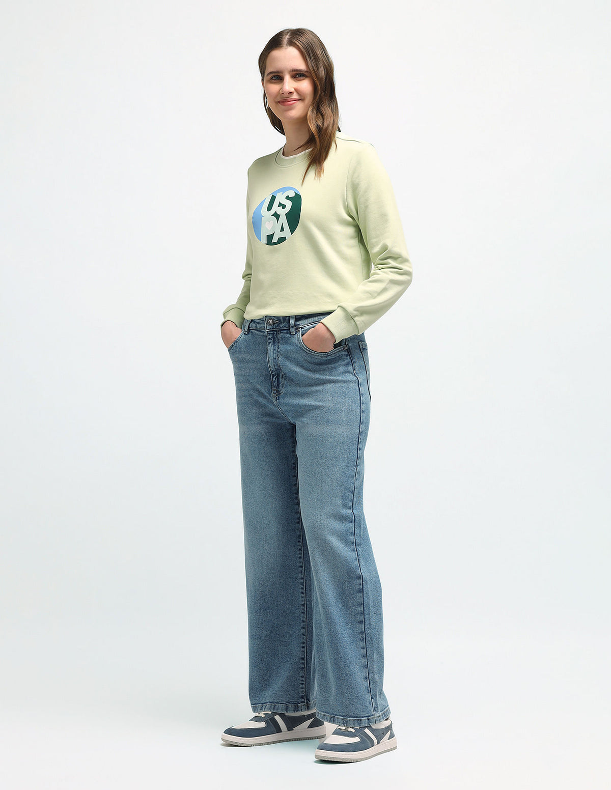 | Tipped crew neck | Long sleeves | Ribbed neck, sleeve hems and hemline | Typographic brand printed pattern | Knitted |