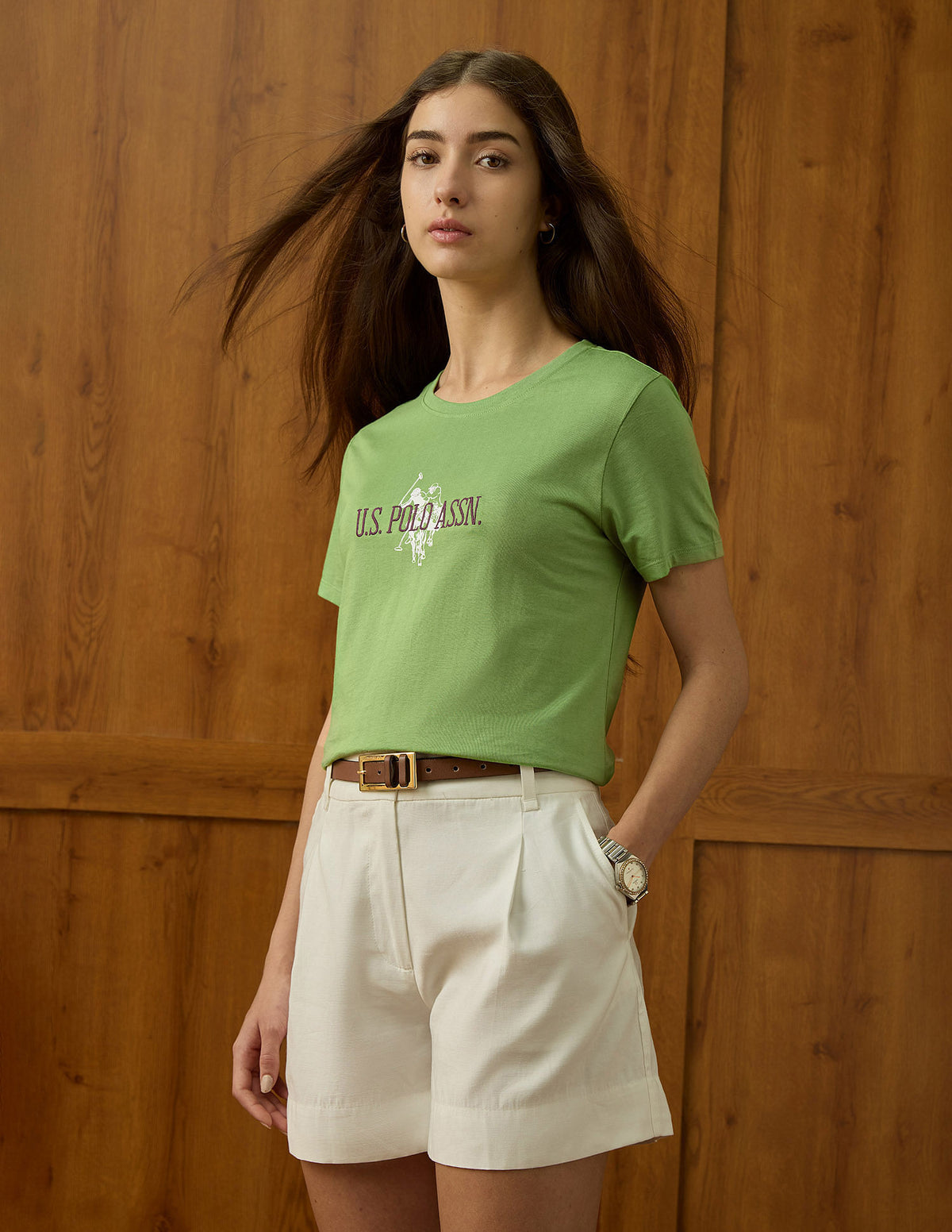 | Ribbed crew neck | Short sleeves | Straight hemline | Brand printed pattern | Knitted | Regular fit |