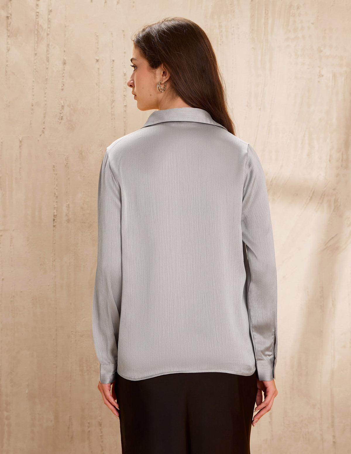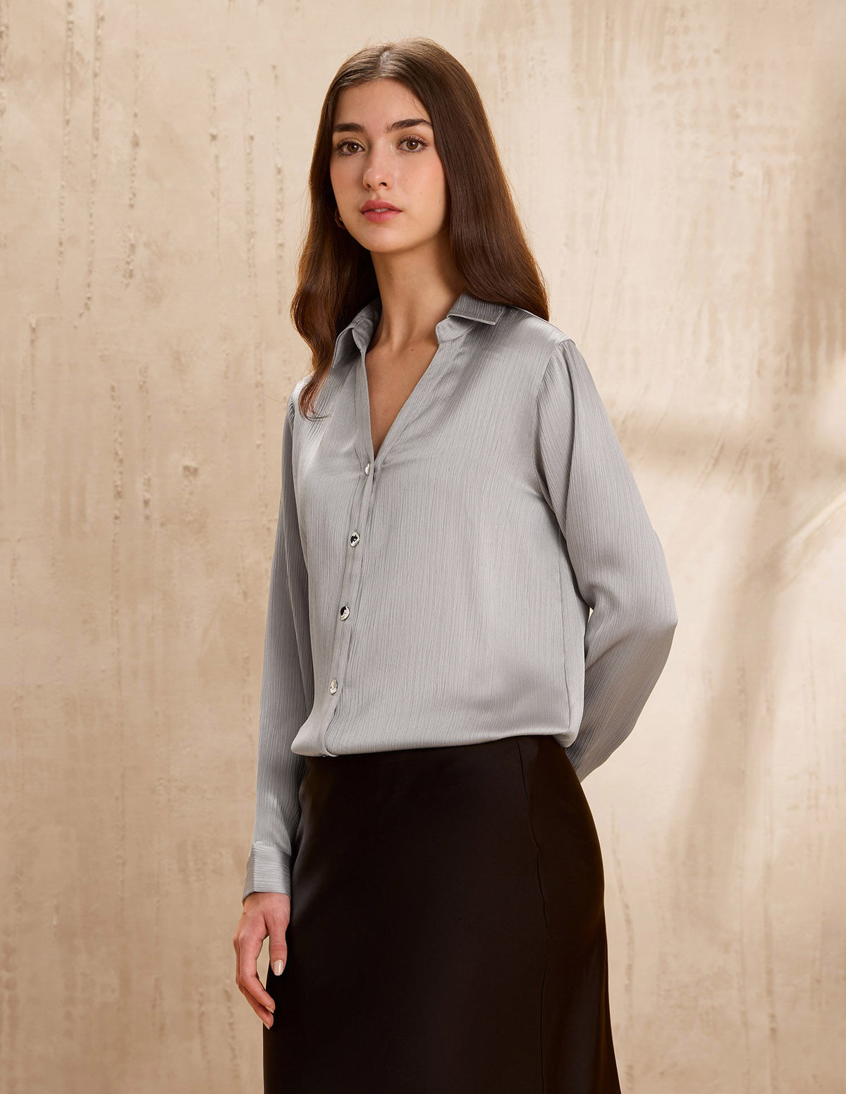 | Spread collar | Logo at chest | Full placket | Long sleeves with barrel cuffs | Curved hemline | Solid pattern | Regular fit |