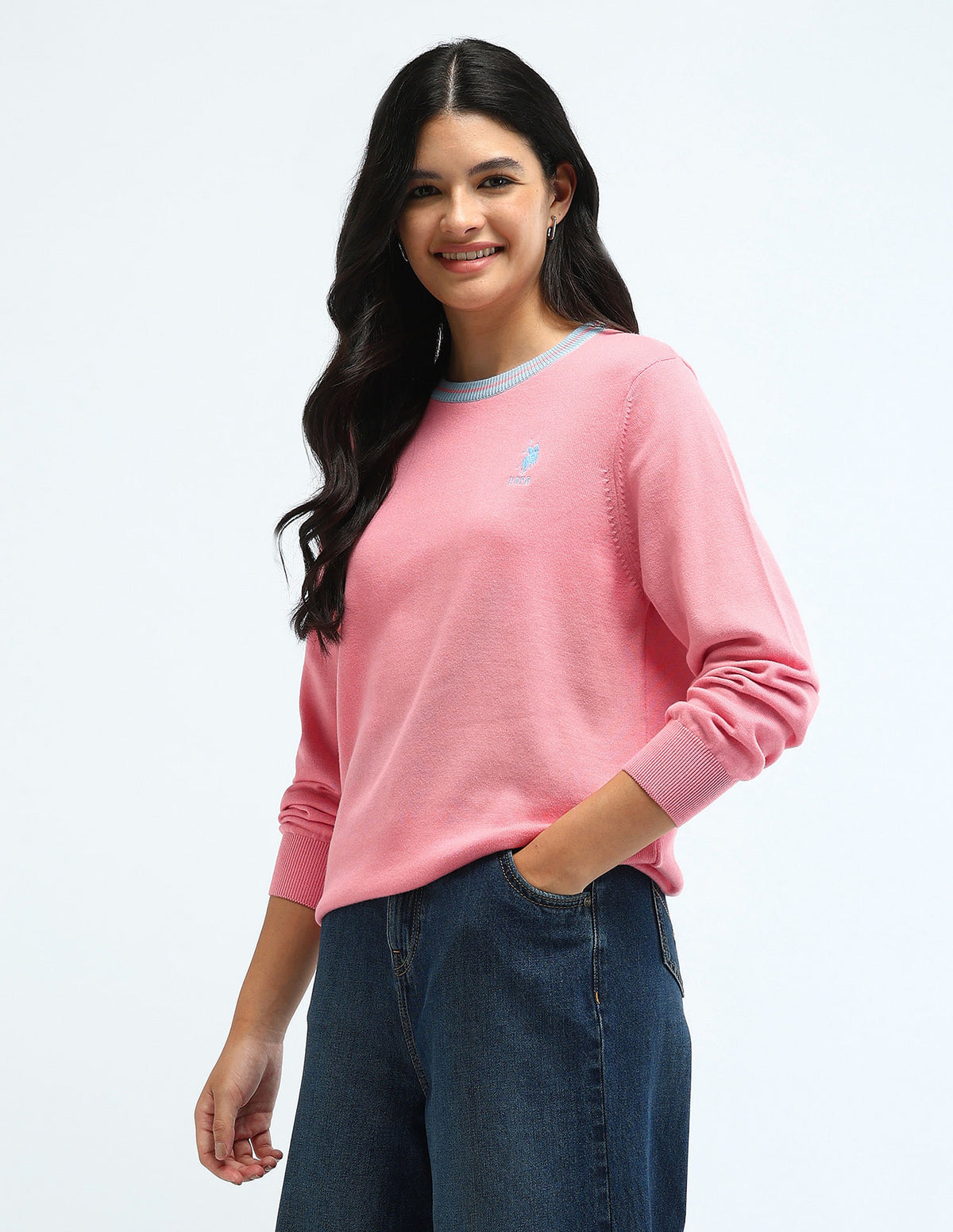 | Tipped crew neck | Logo at chest | Drop shoulders | Long sleeves | Ribbed neck, sleeve hems and hemline | Solid pattern | Knitted | Regular fit |