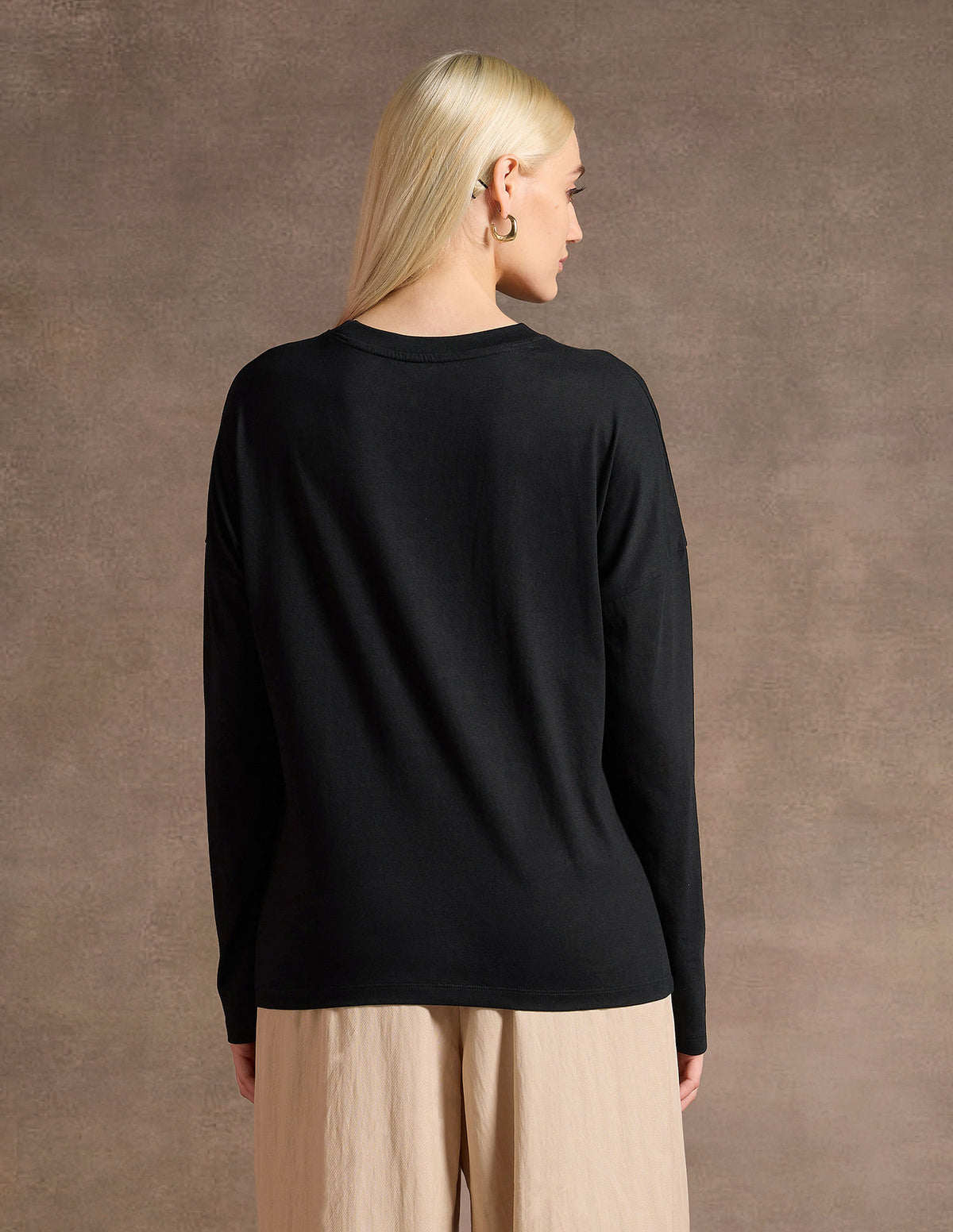 | Ribbed crew neck | Long sleeves | Straight hemline | Brand printed and embroidered pattern | Single jersey knit | Drop shoulder relaxed fit