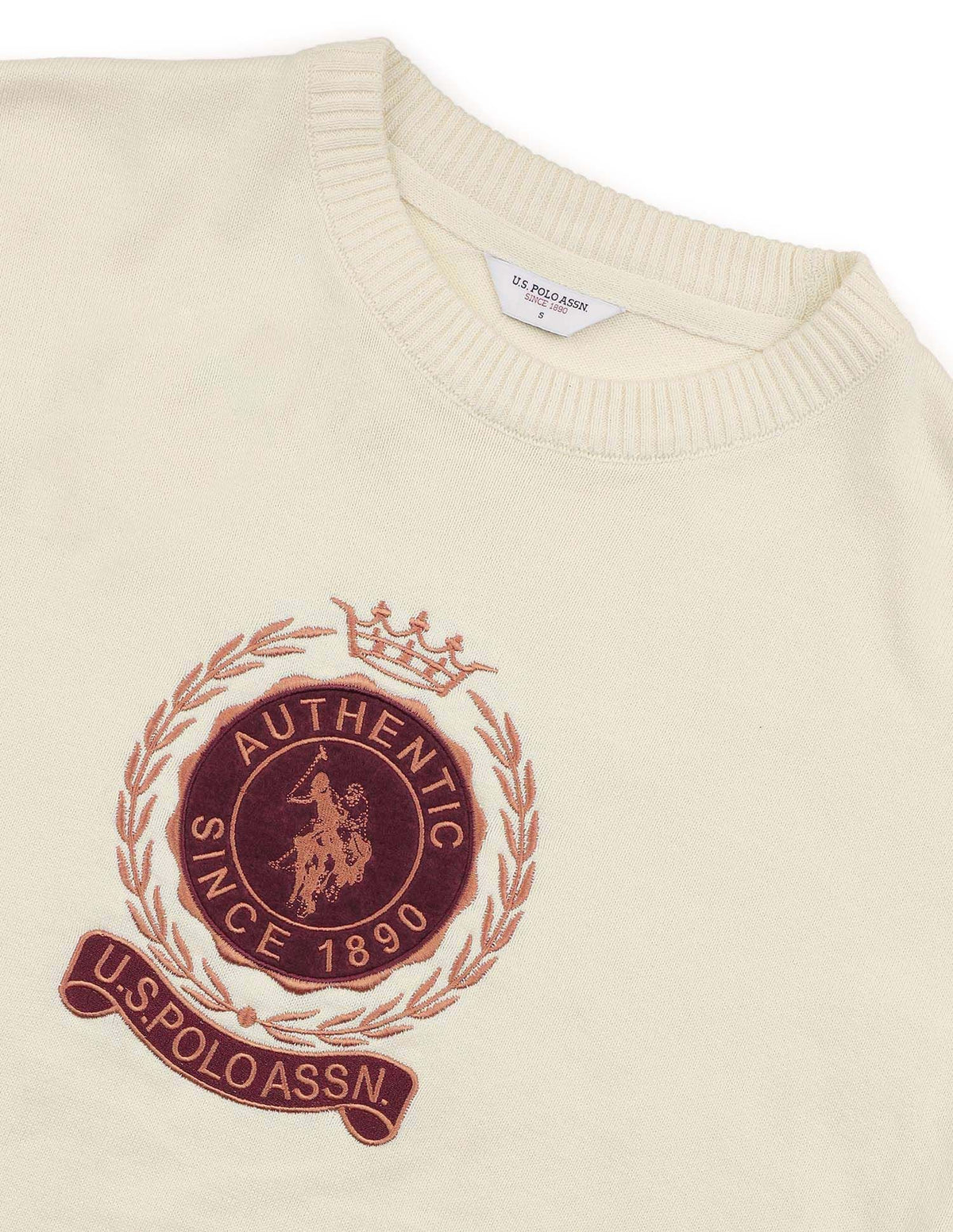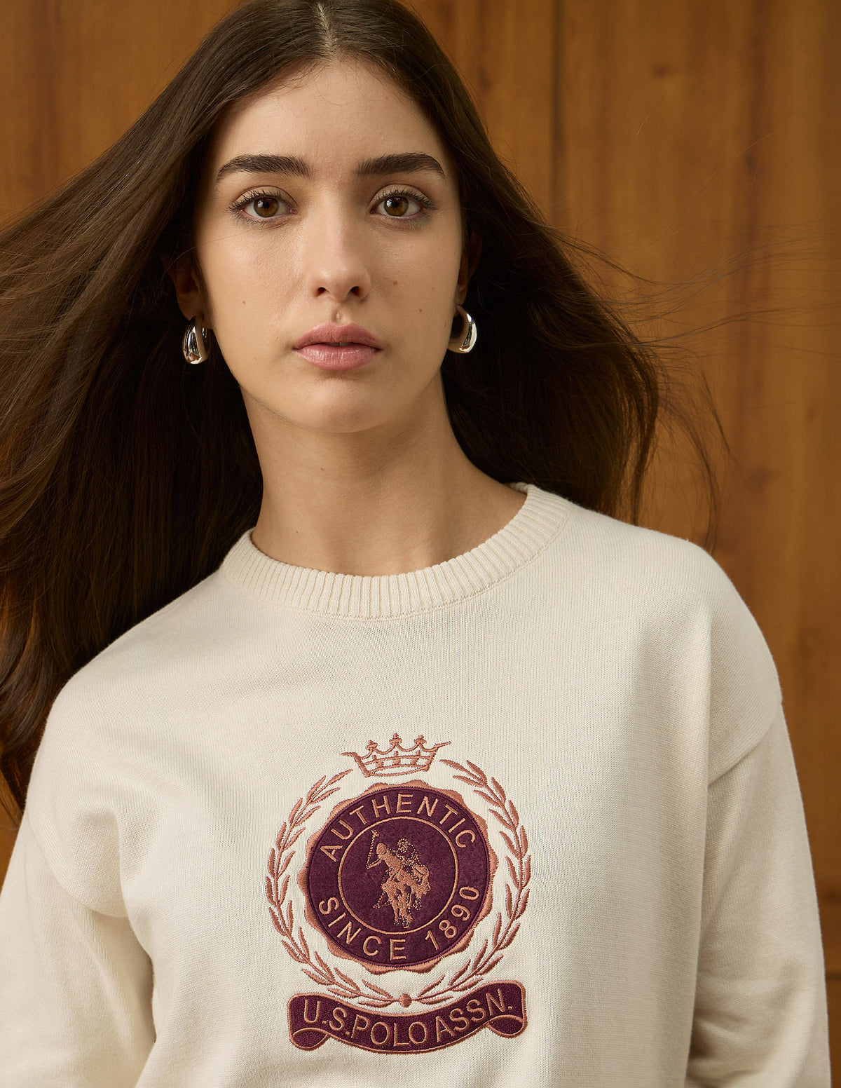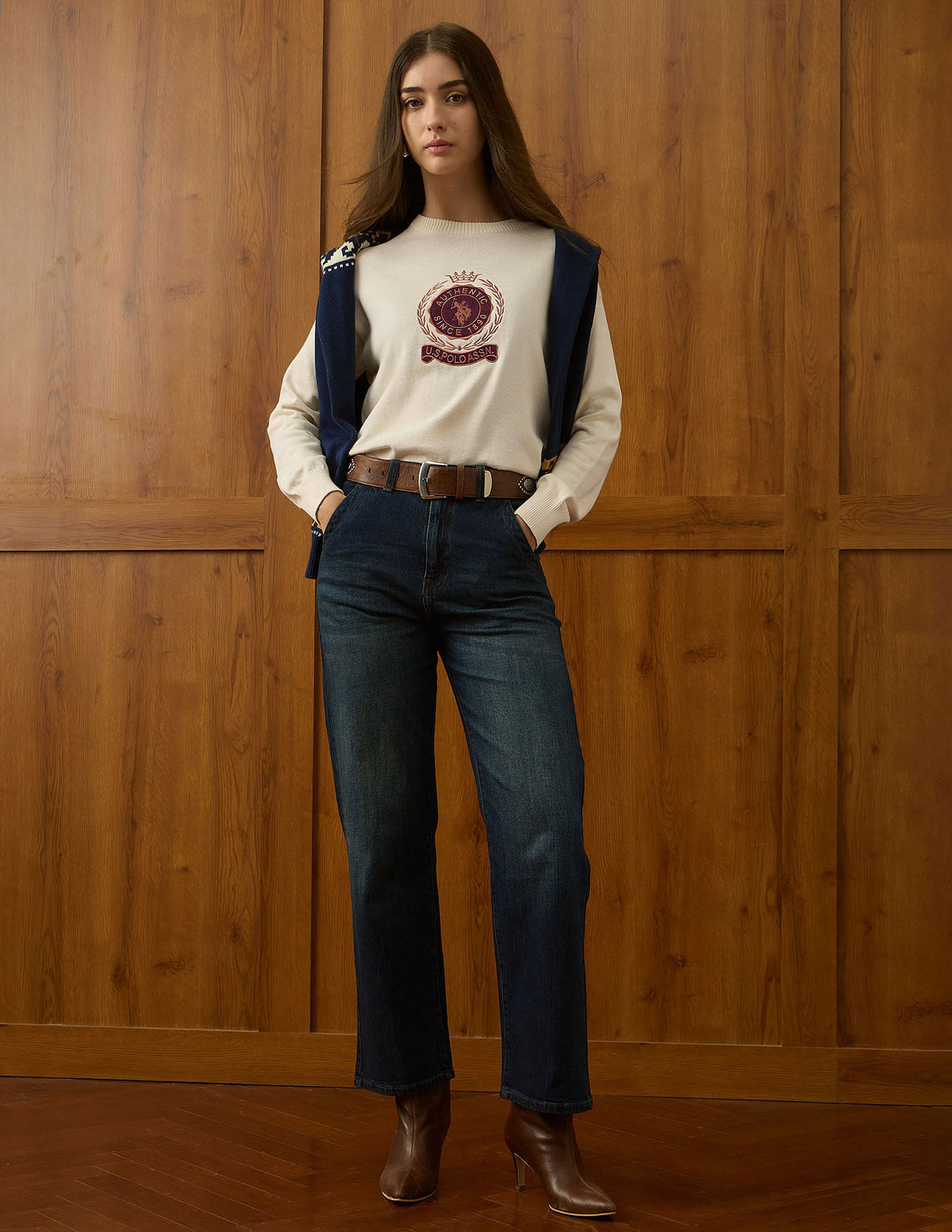 | Crew neck | Long sleeves | Ribbed neck, sleeve hems and hemline | Brand logo embroidered pattern | Knitted | Relaxed fit |