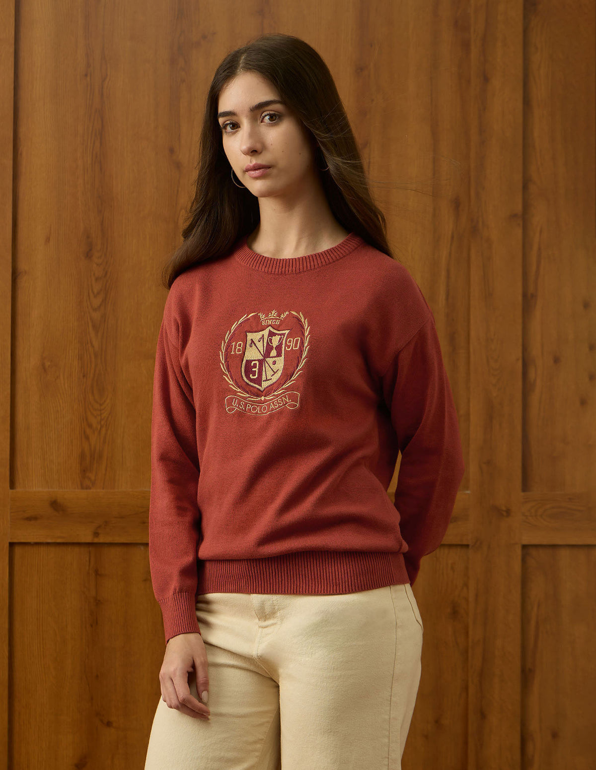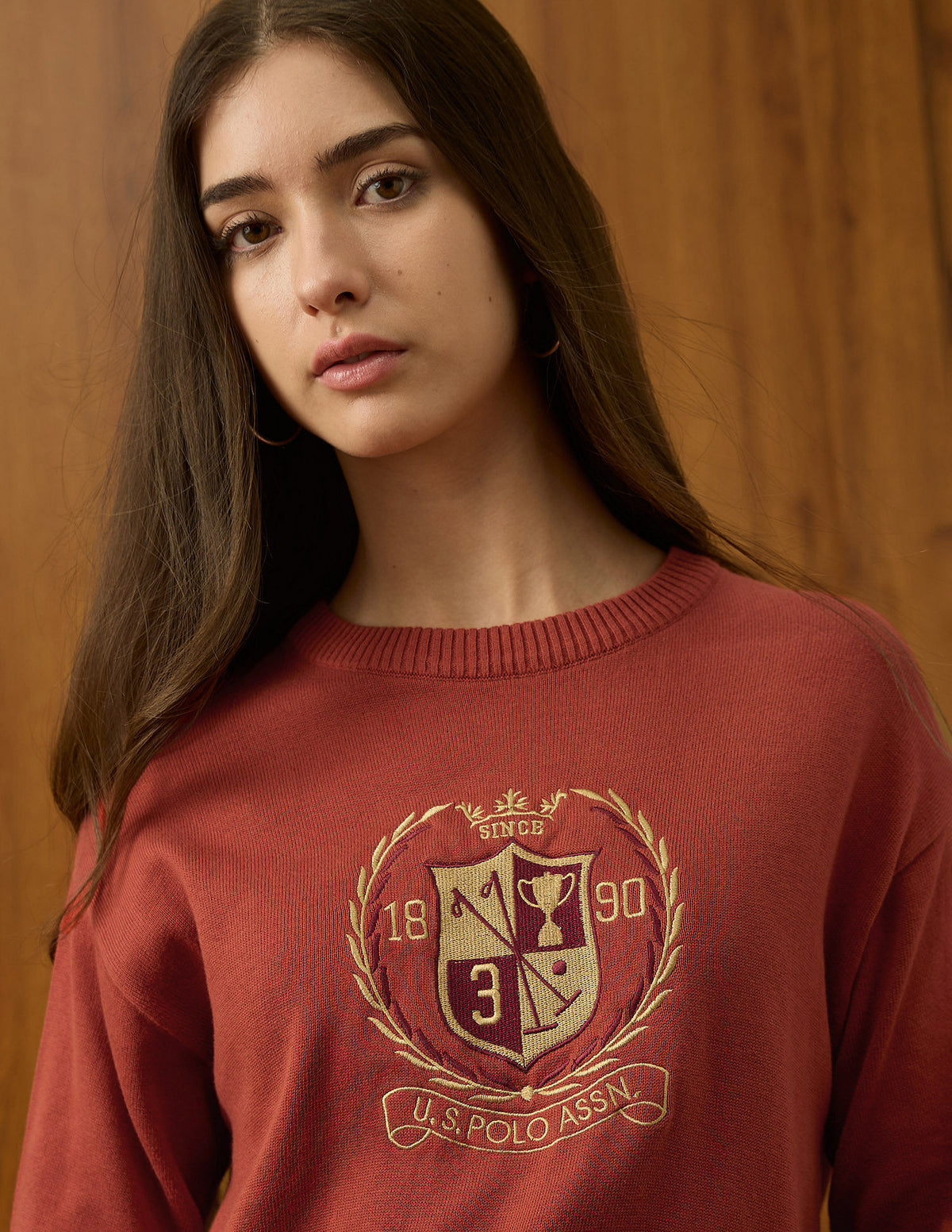 | Crew neck | Long sleeves | Ribbed neck, sleeve hems and hemline | Brand logo embroidered pattern | Knitted | Relaxed fit |