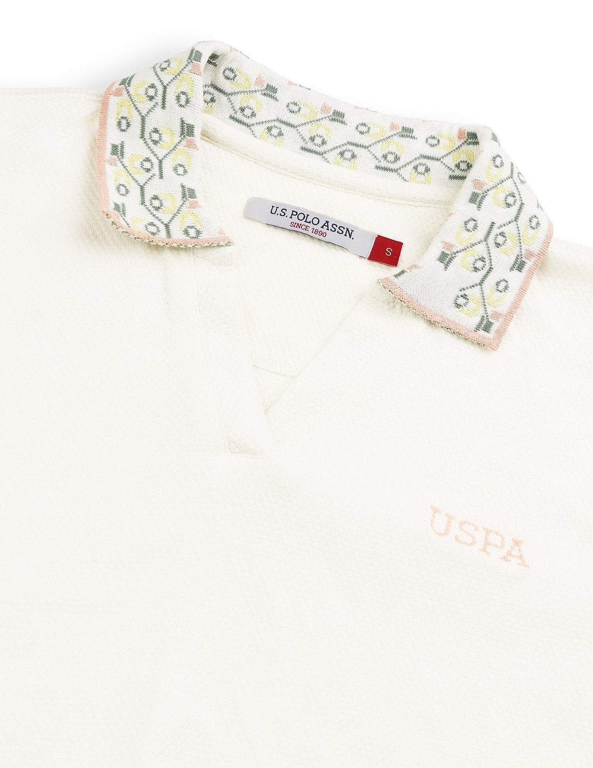 | Embroidered polo collar with v-neck | Logo at chest | Short sleeves | Uneven vented hem | Solid pattern | Pique knit | Regular fit