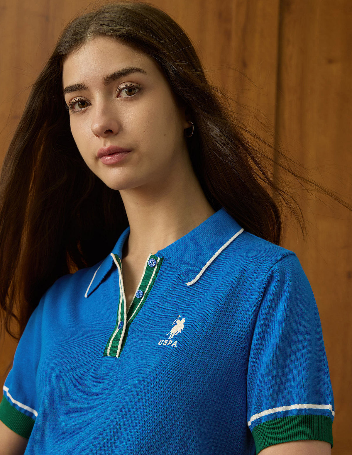 | Polo collar | Logo at chest | Short button placket | Short sleeves | Ribbed collar and sleeve hems | Uneven vented hem | Solid pattern | Pique knit | Relaxed fit |