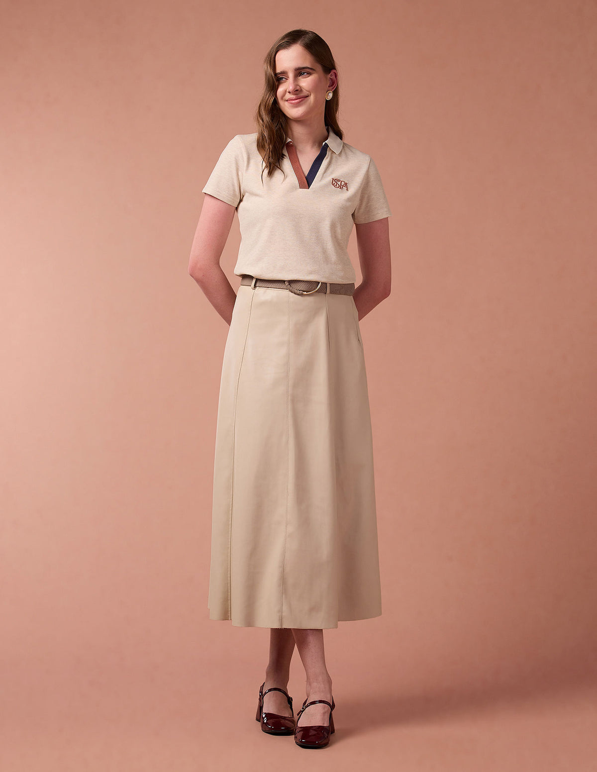 | Polo collar | Embroidered logo at chest | Open contrast placket | Short sleeves | Ribbed collar and sleeve hems | Vented hem | Heathered pattern | Knitted | Regular fit |
