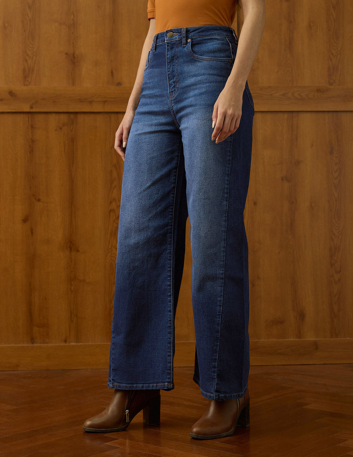 | High-rise waist | Button and zip fly closure | Five pockets | Denim weave | Baggy fit |