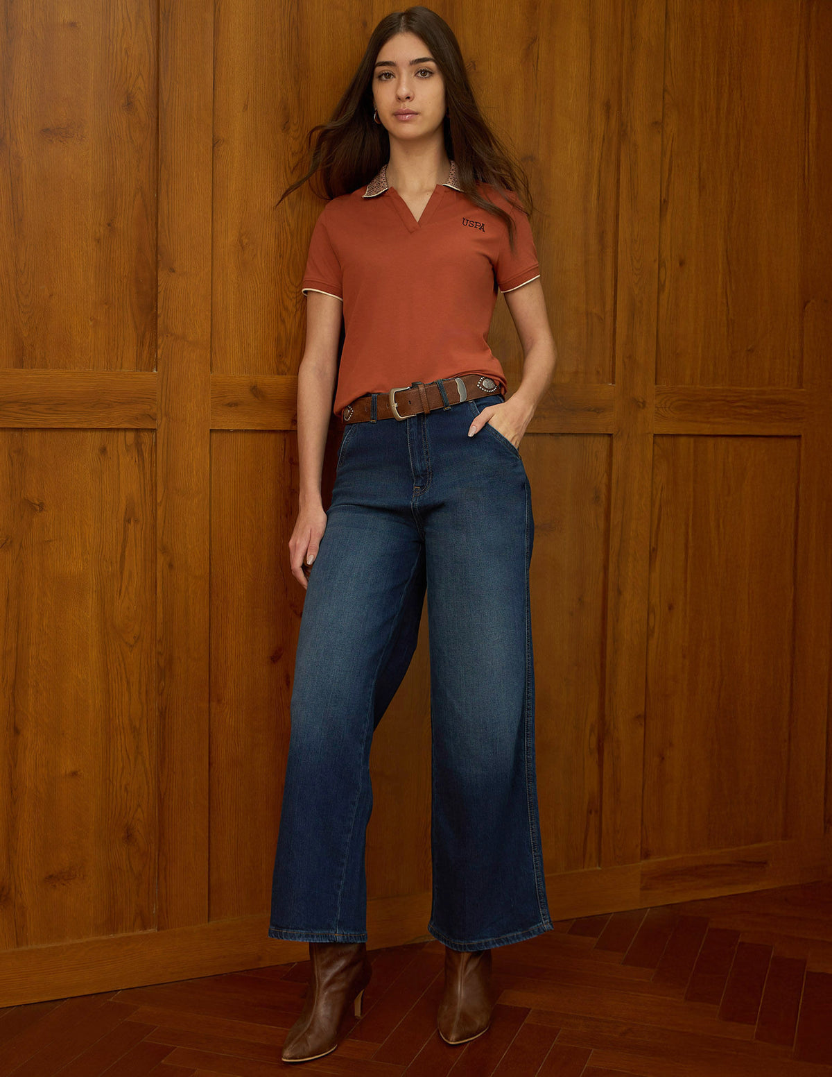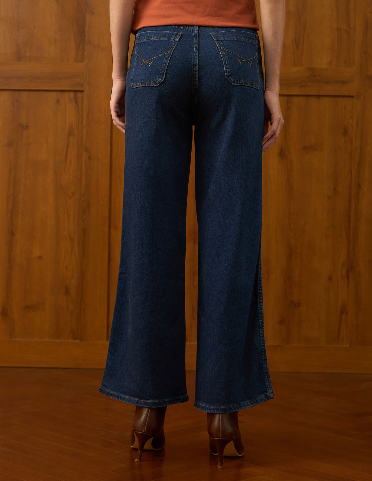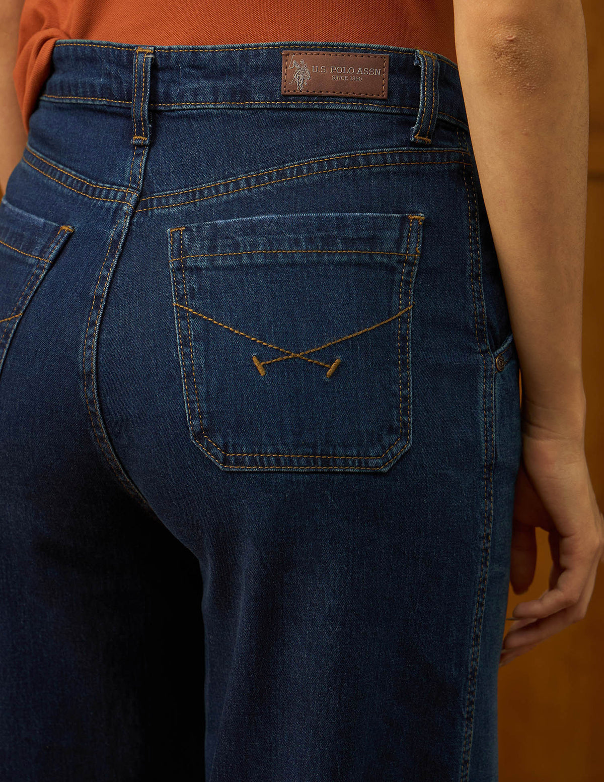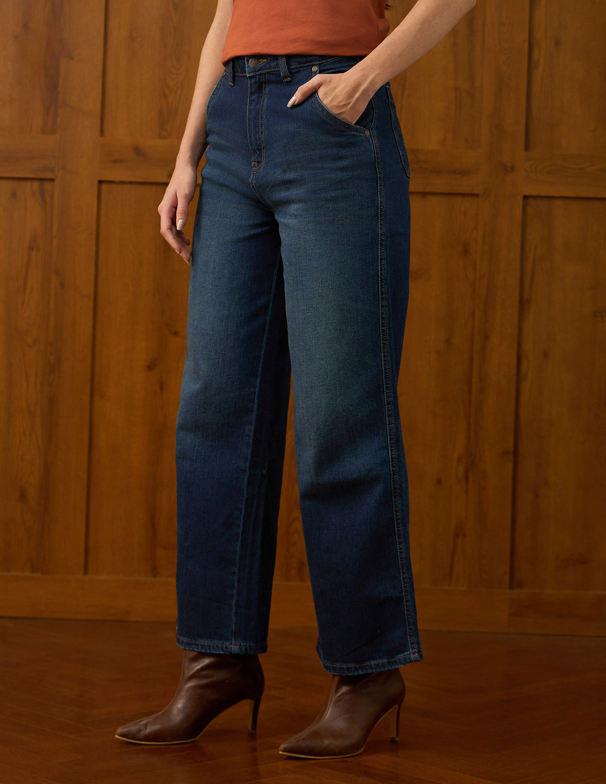 | High-rise waist | Button and zip fly closure | Five pockets | Stonewash | Denim weave | Baggy fit |
