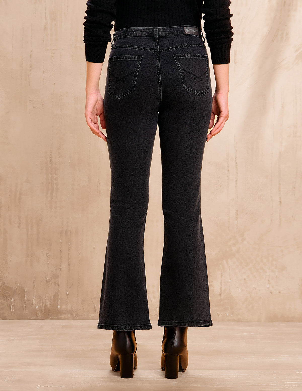 Story: Classic bootcut meets modern stone wash for timeless appeal. High-rise waist ensures a flattering fit every time.