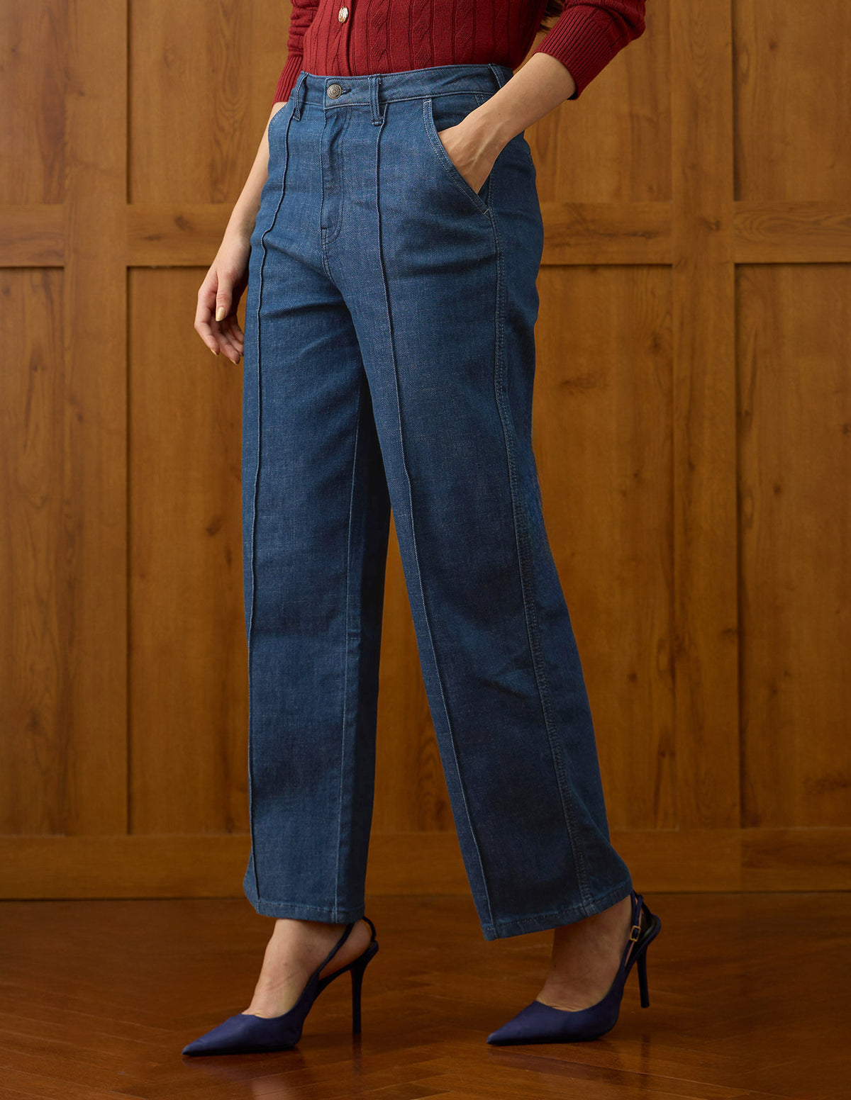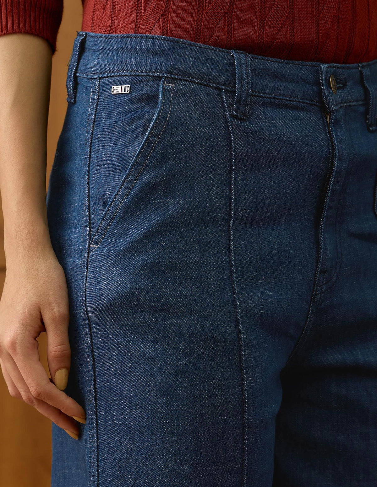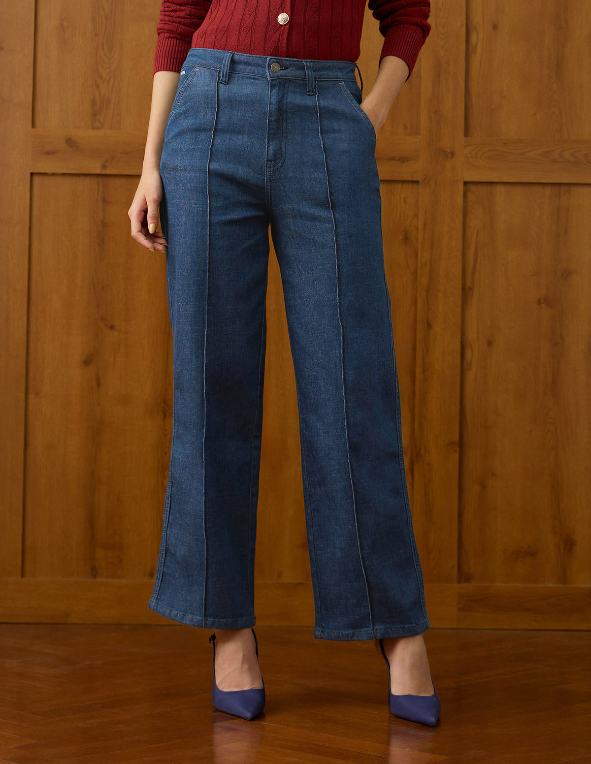 | High-rise waist | Button and zip fly closure | Five pockets | Denim weave | Straight fit |