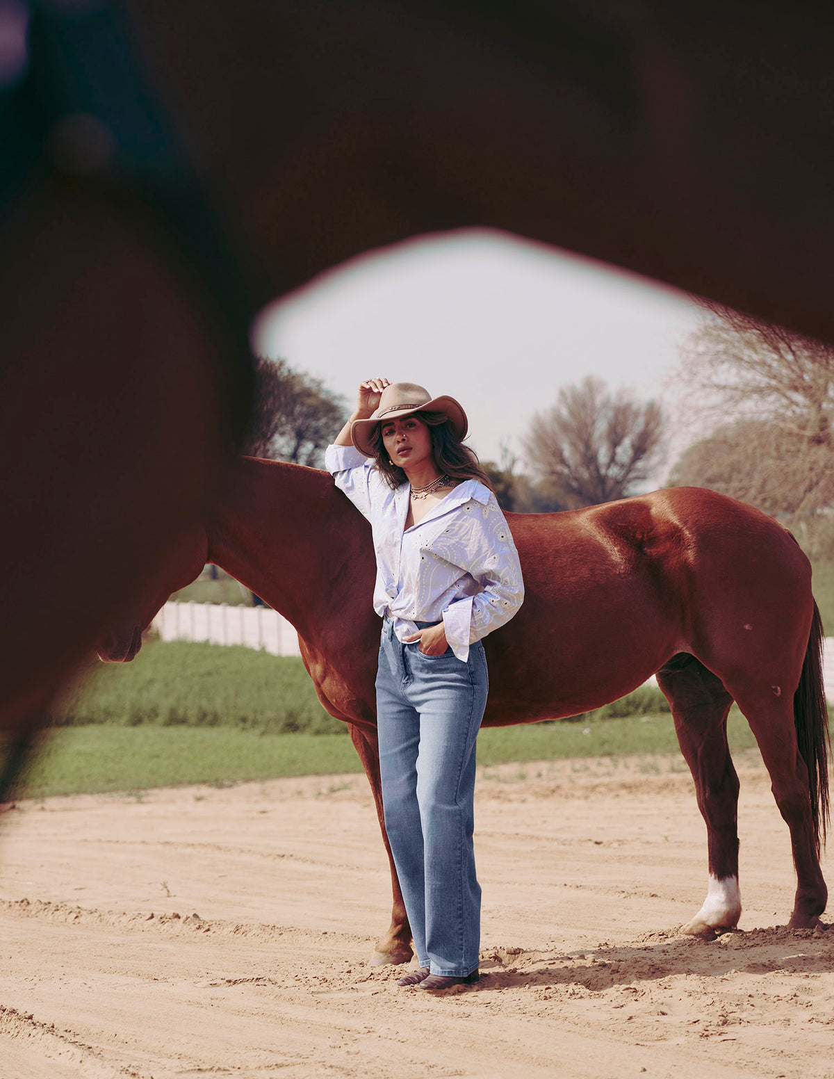 | High-rise waist | Button and zip fly closure | Five pockets | Denim weave | Straight fit |