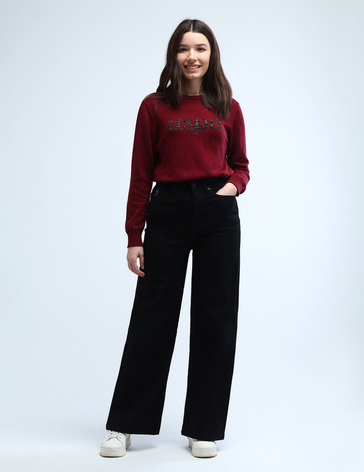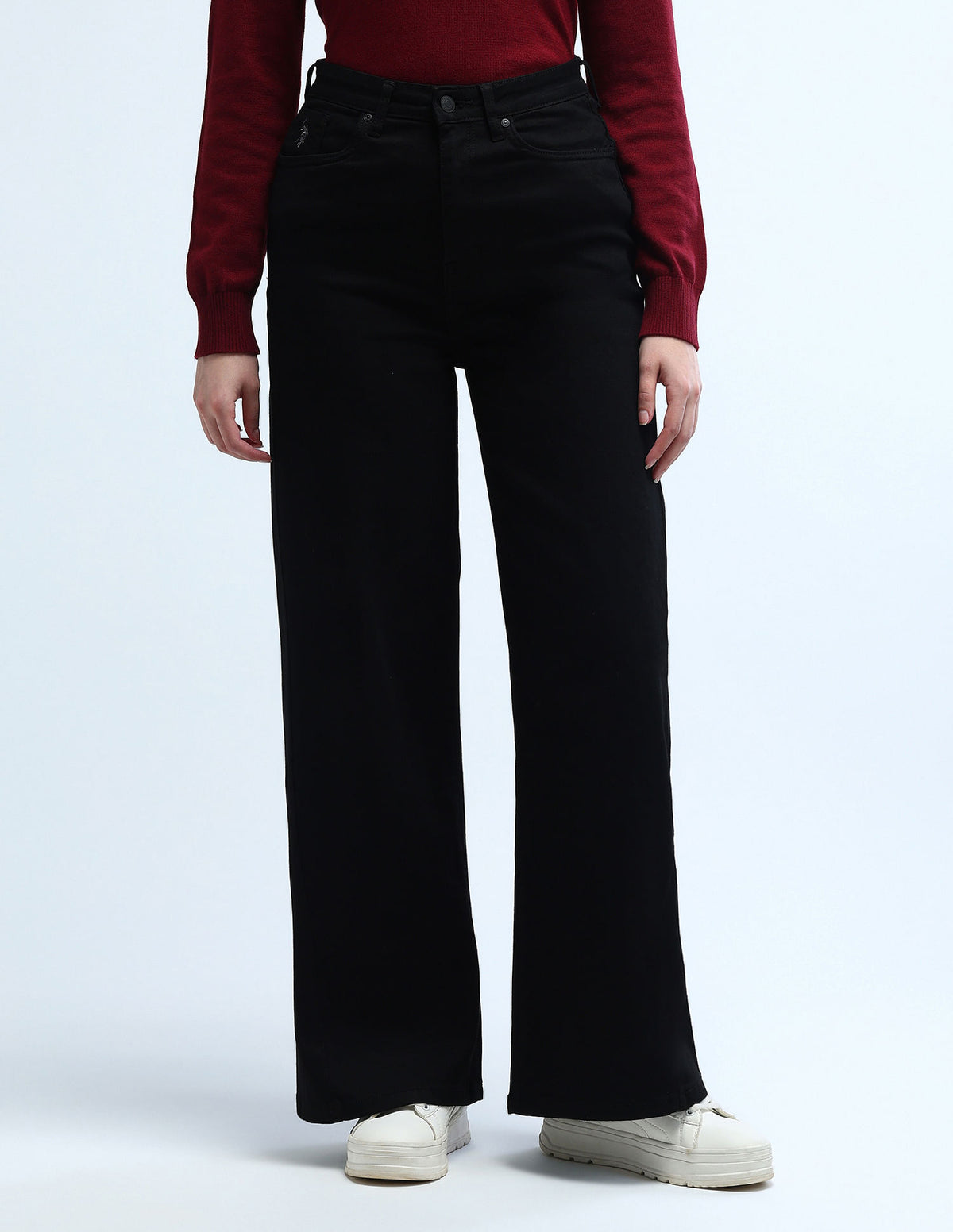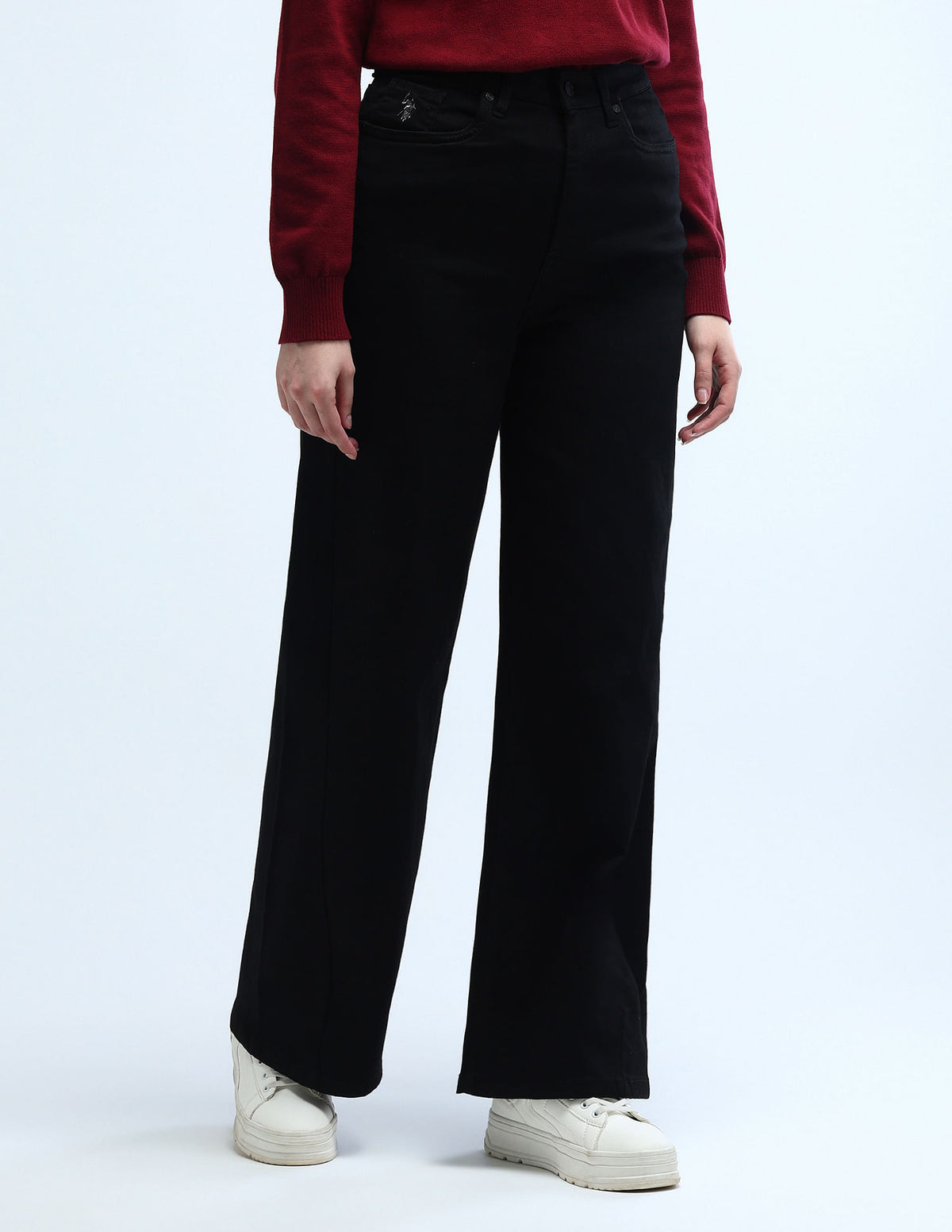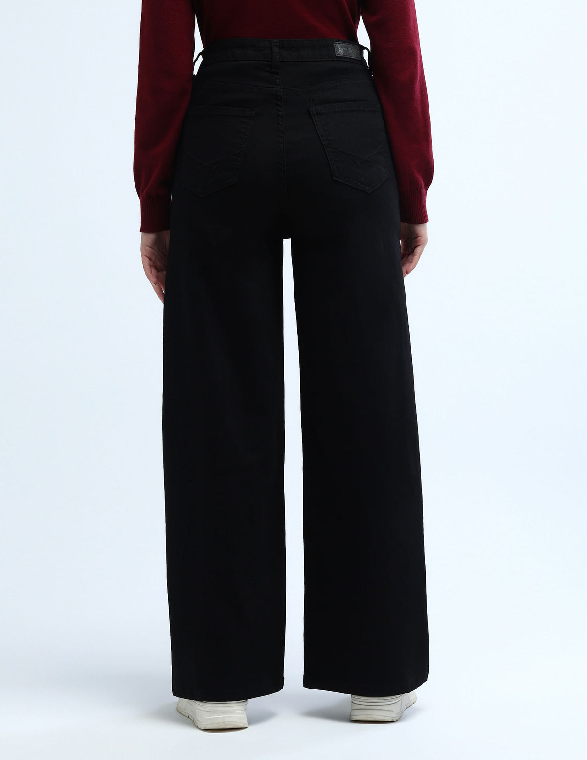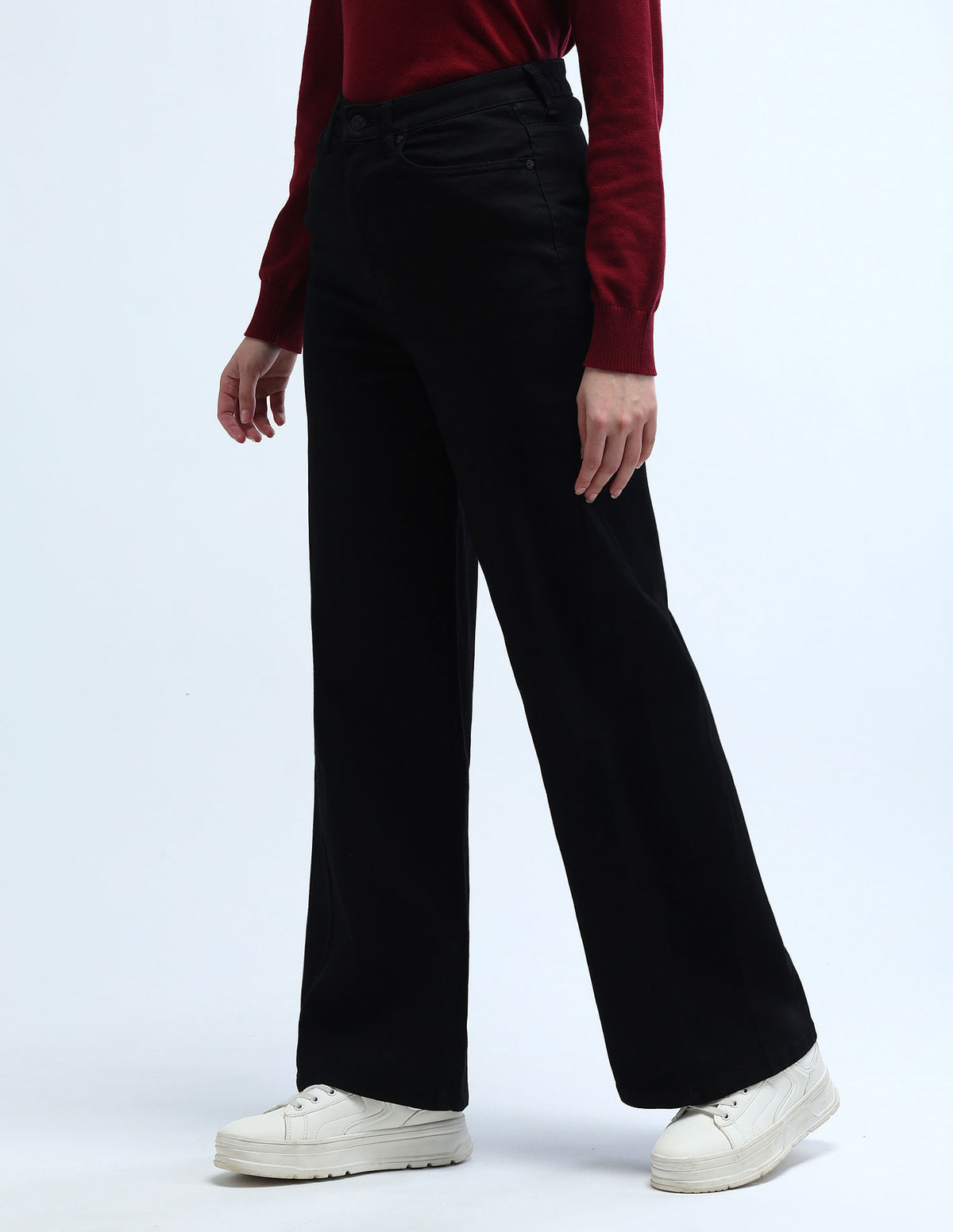 | High-rise waist | Button and zip fly closure | Five pockets | Clean look | Floor length | Twill weave | Baggy fit
