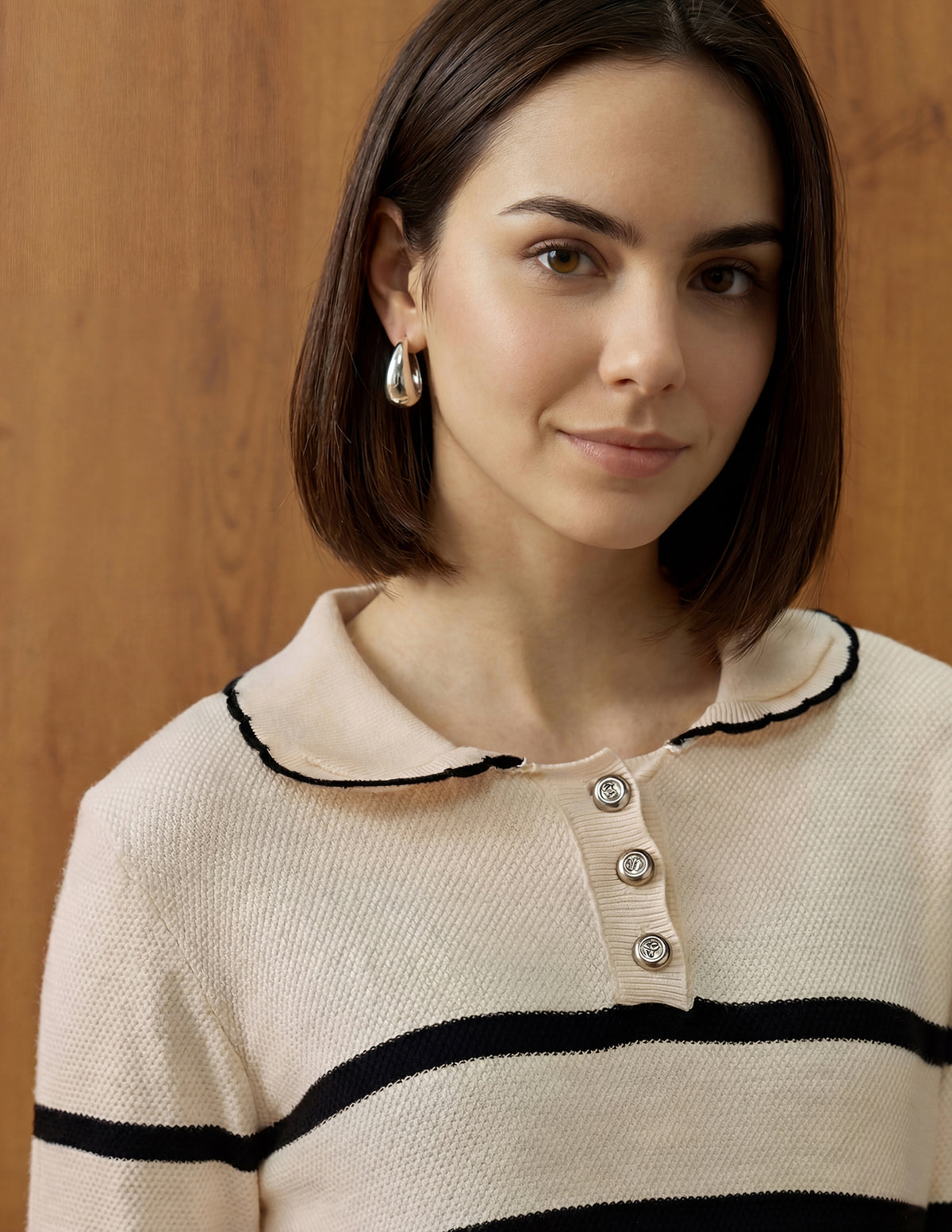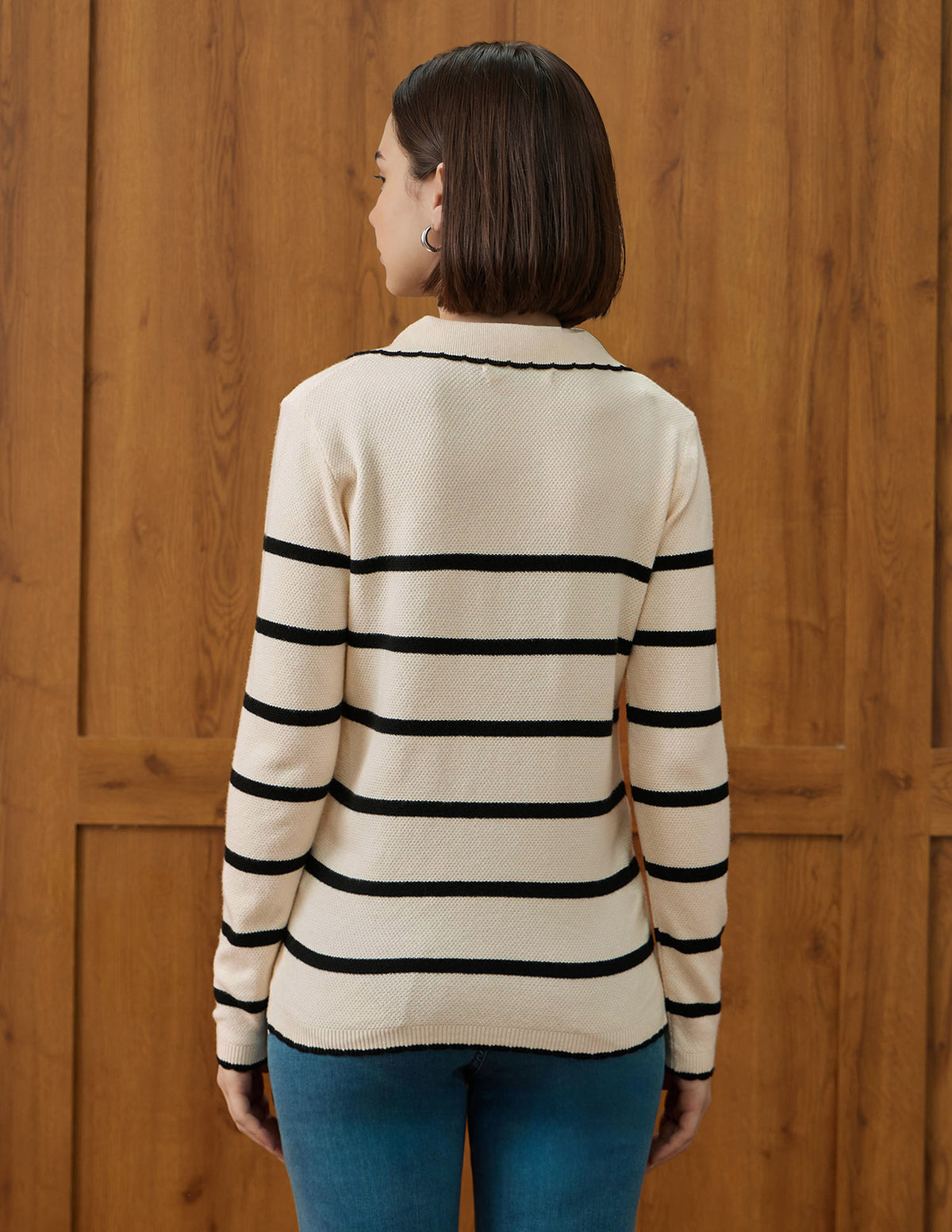 | Polo neck | Long sleeves | Ribbed neck, sleeve hems and hemline | Horizontal striped pattern | Knitted | Regular fit |