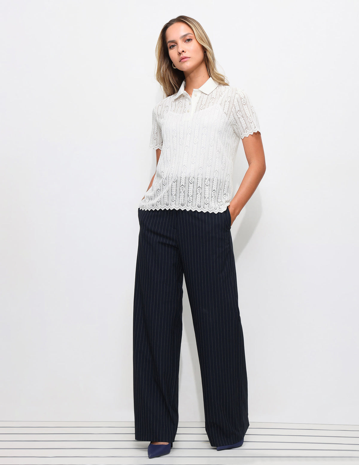 | Spread collar | Full button placket | Short sleeves | Straight hemline | Vertical striped pattern | Relaxed fit