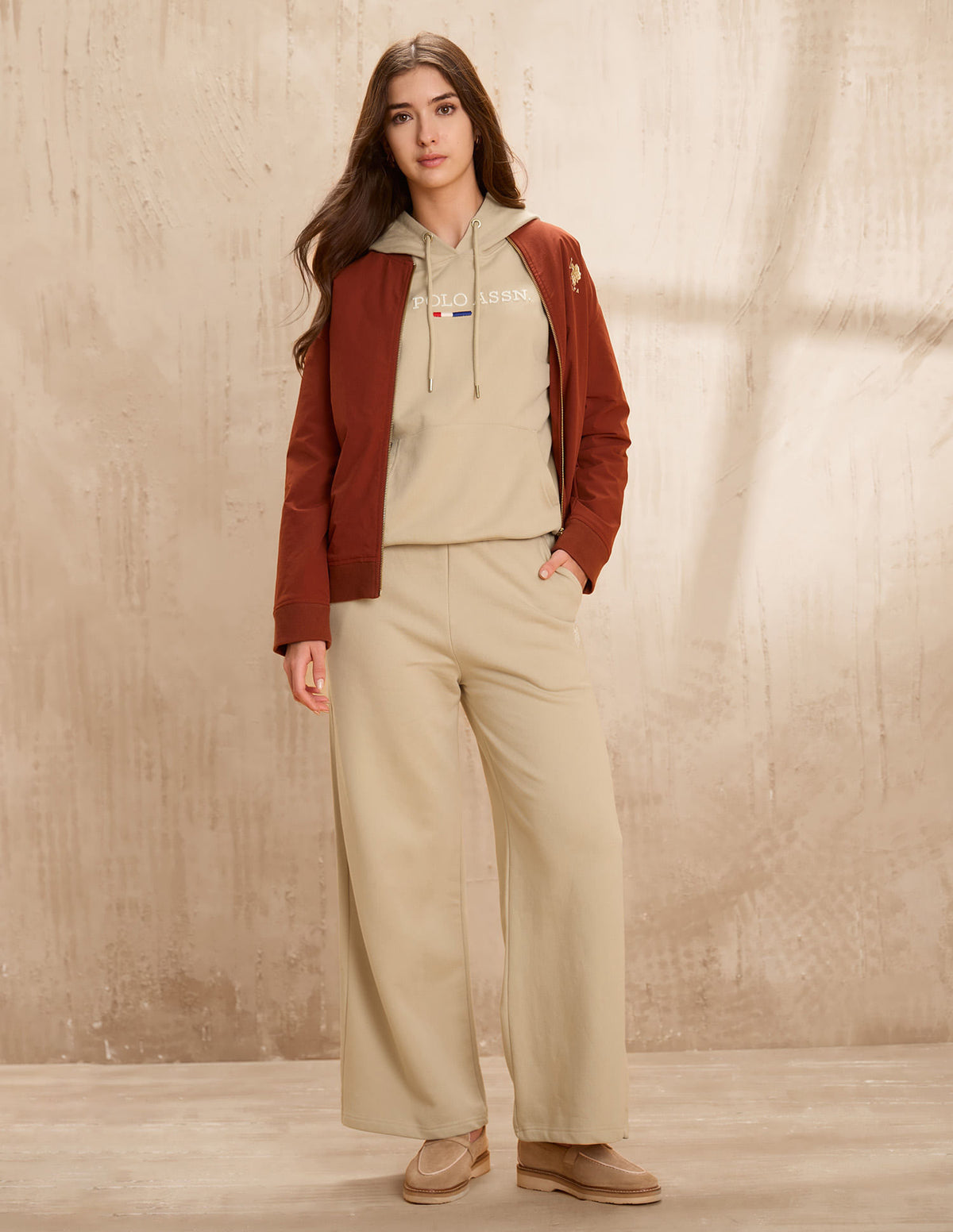 | Hooded | Long sleeves | Ribbed sleeve hems and hemline | Brand printed pattern | Knitted | Loose fit |