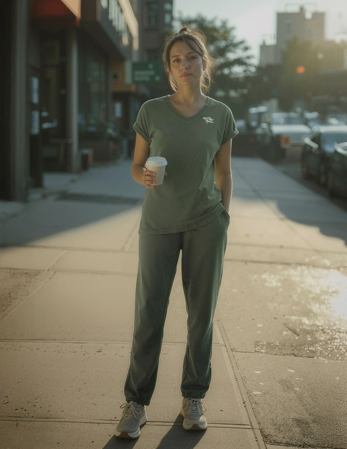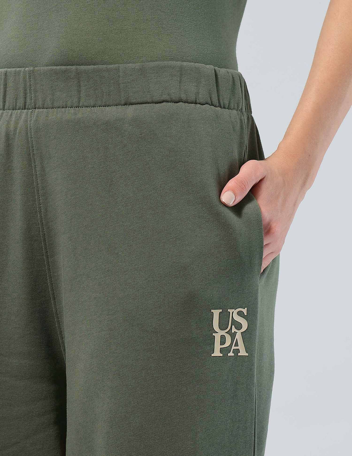 | Mid-rise waist | Slip-on closure | 2 pockets | Flat front | Solid pattern | Knitted weave | Barrel fit |