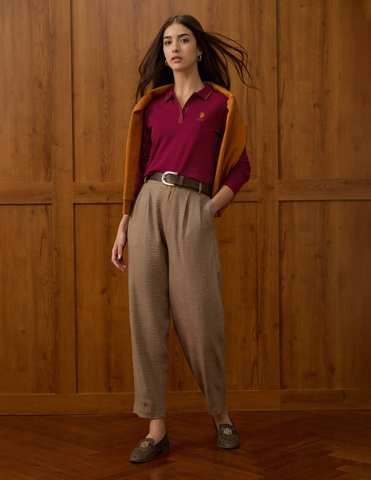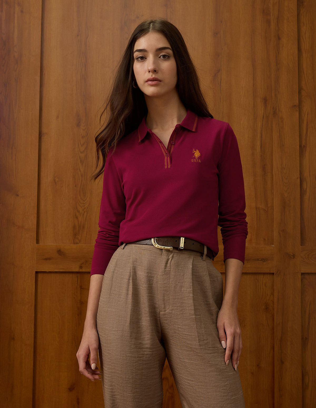 | Polo collar | Logo at chest | Short button placket | Short sleeves | Ribbed collar and sleeve hems | Uneven vented hem | Solid pattern | Pique knit | Regular fit |