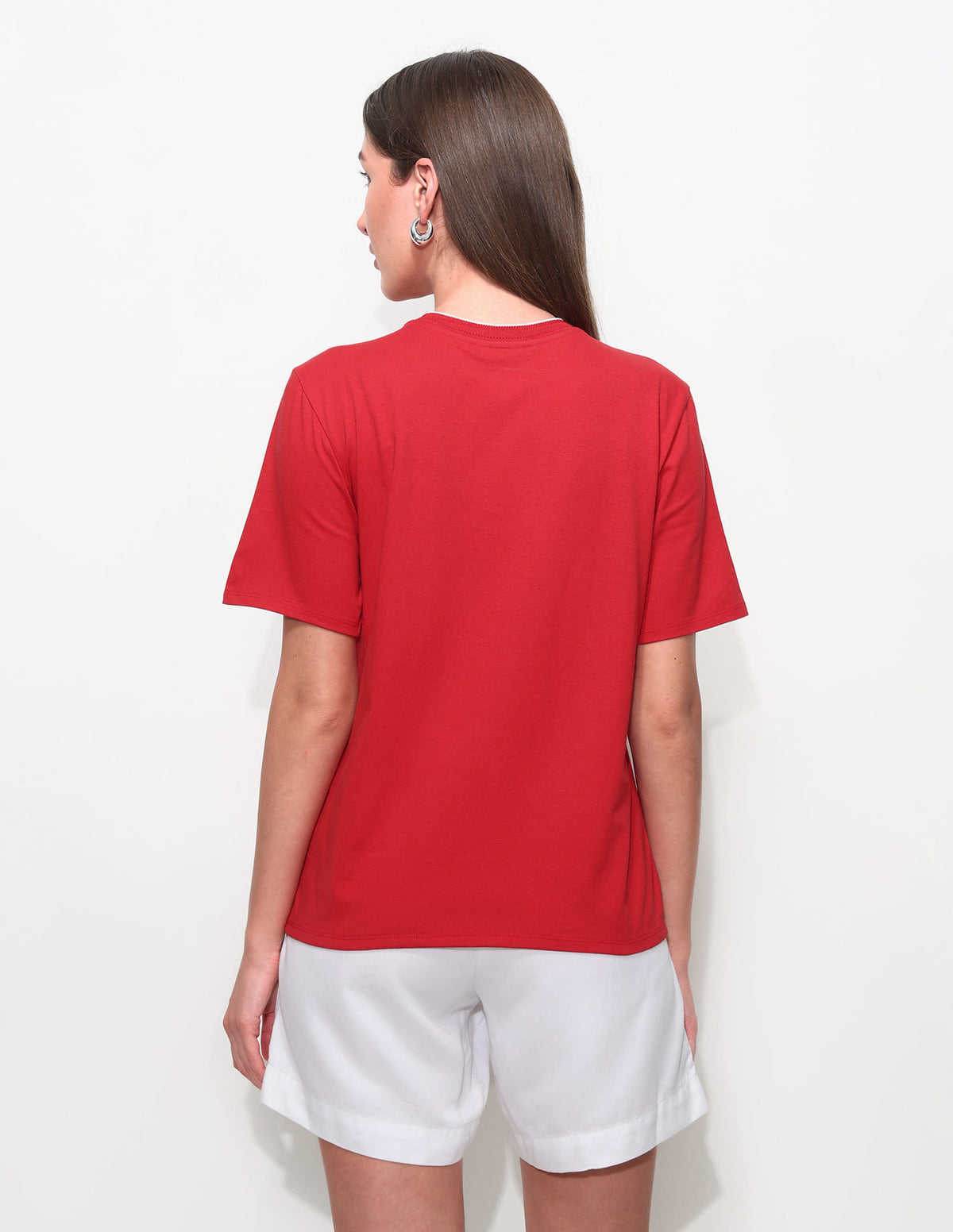 | Ribbed crew neck | Short sleeves | Straight hemline | Brand printed pattern | Knitted | Regular fit |