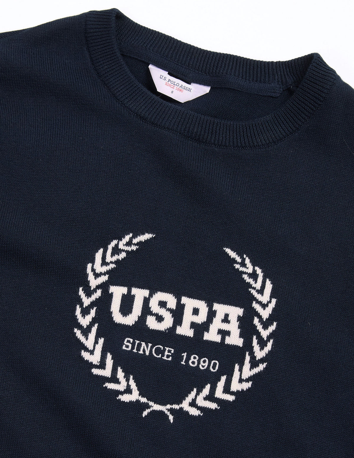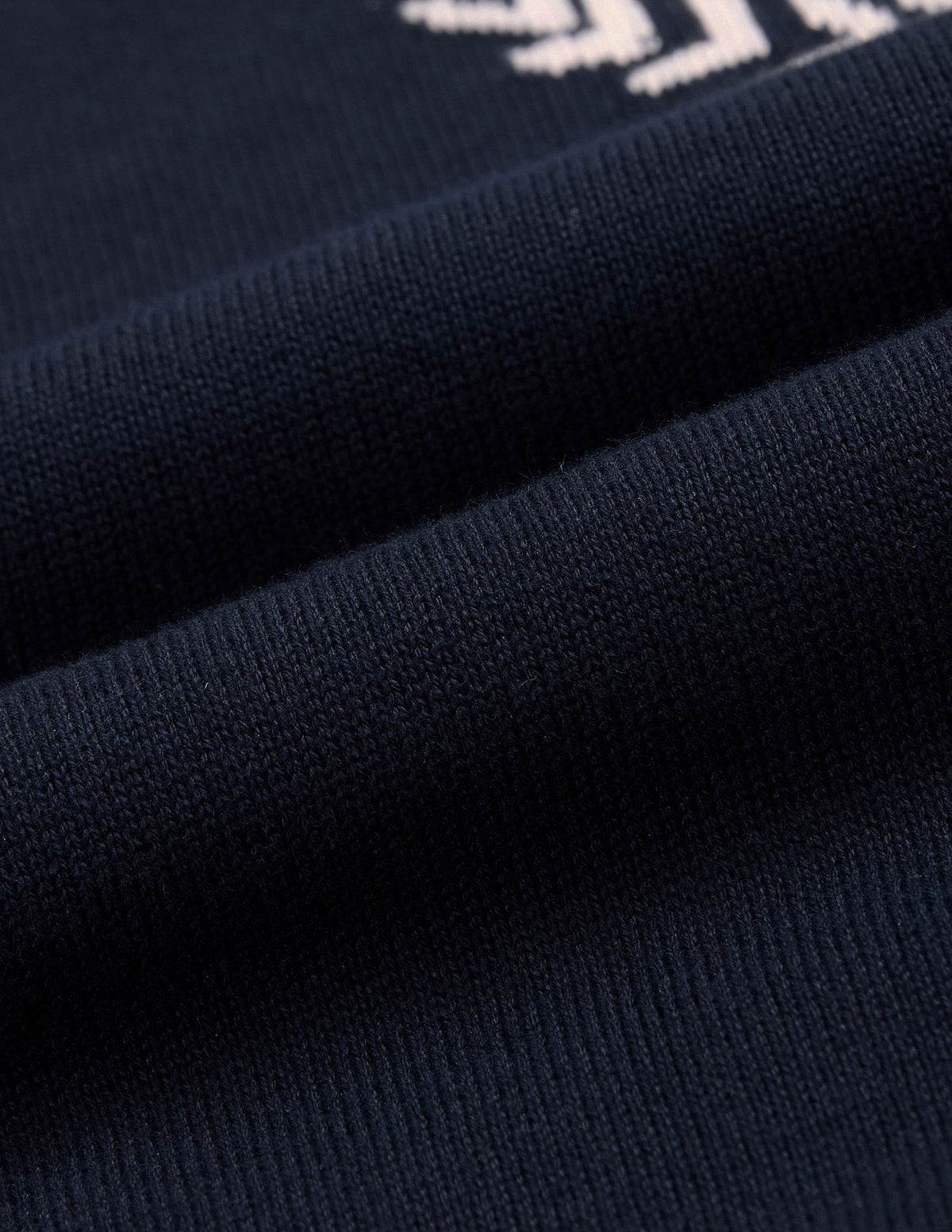 | Crew neck | Long sleeves with stripes | Ribbed neck, sleeve hems and hemline | Brand printed pattern | Knitted | Regular fit |