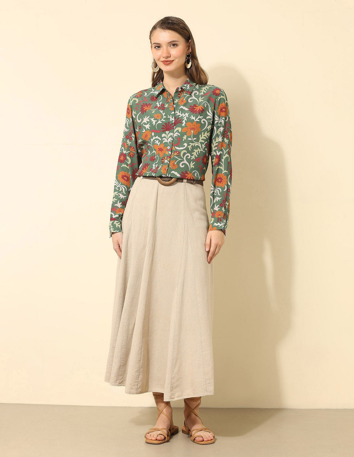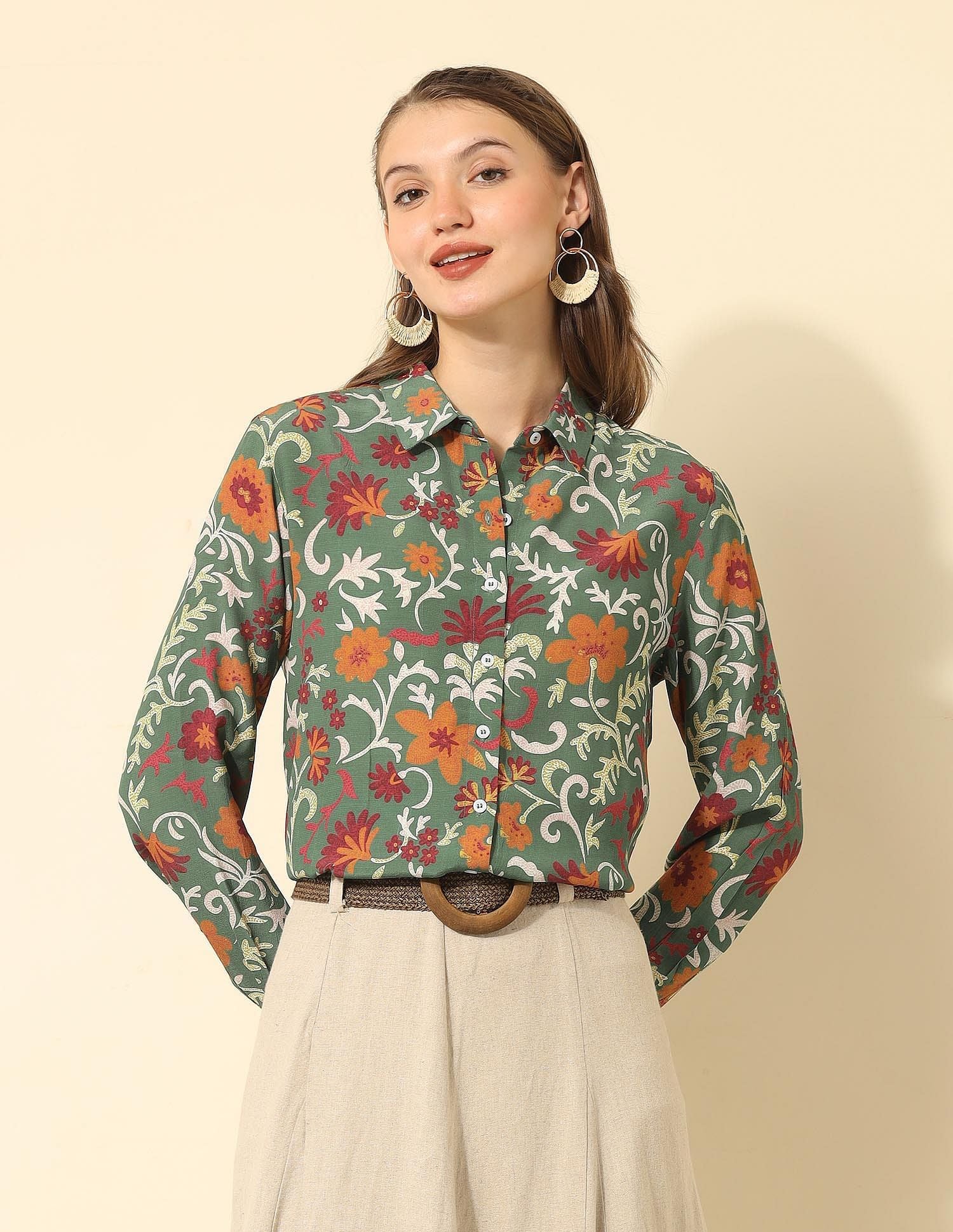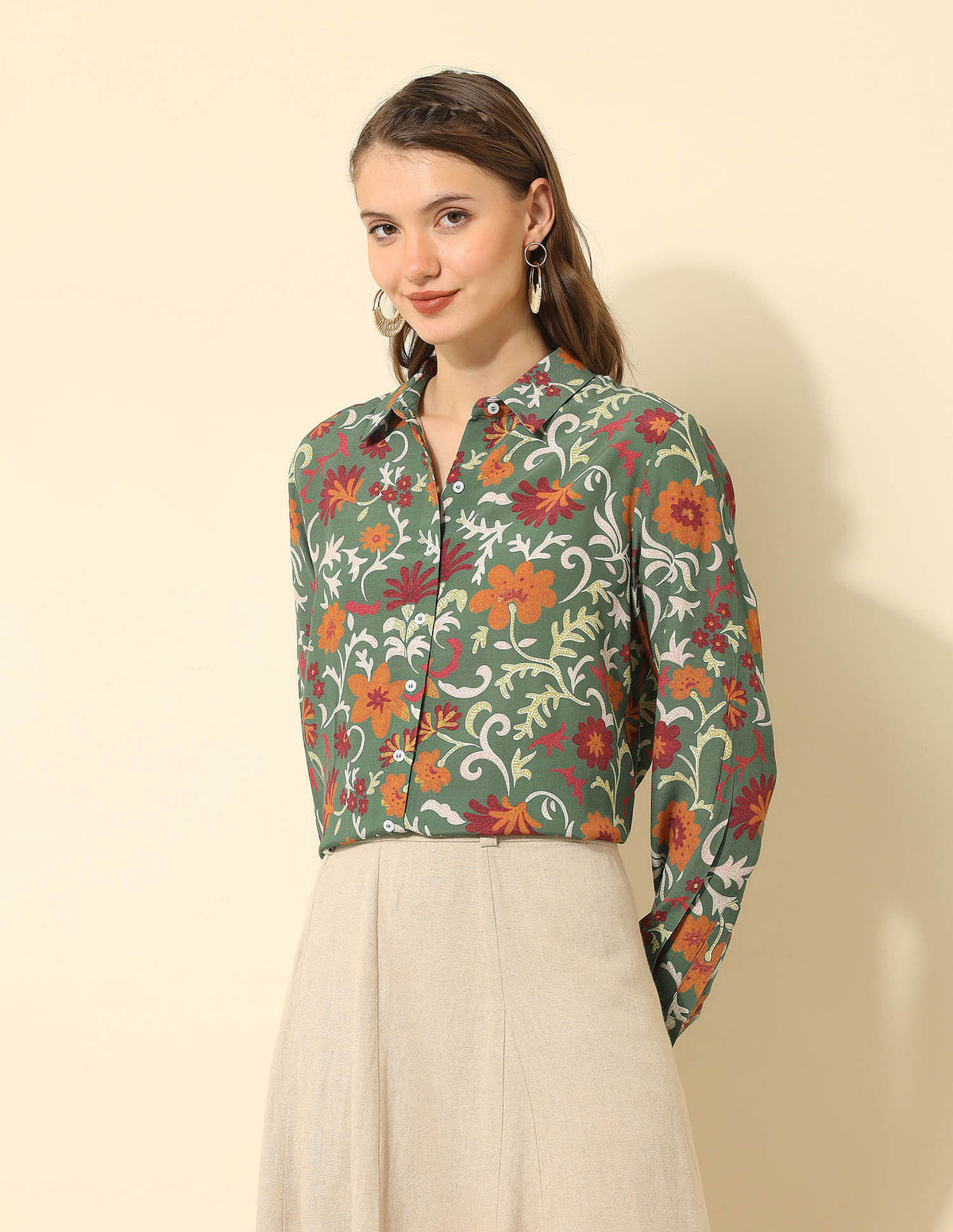 | Spread collar | Full button placket | Long sleeves with barrel cuffs | Curved hemline | Floral printed pattern | Twill weave | Regular fit |