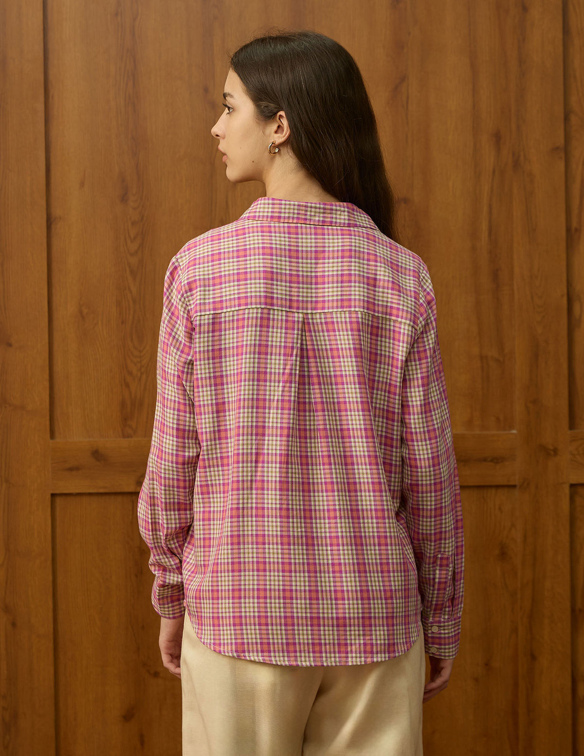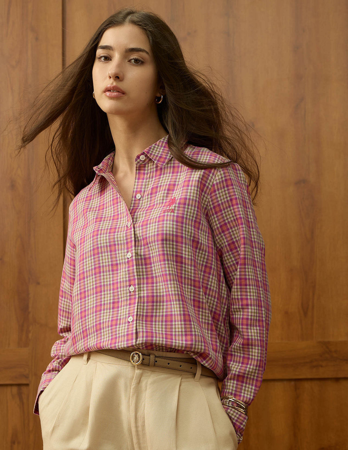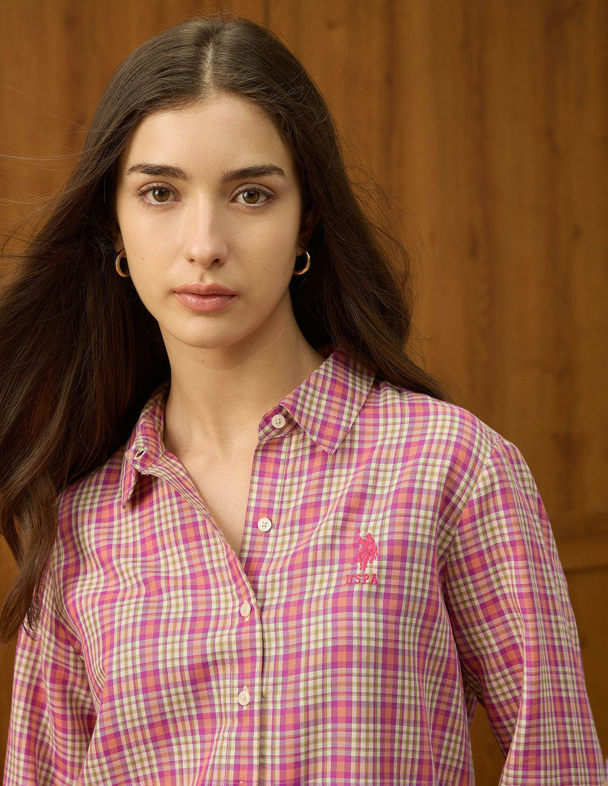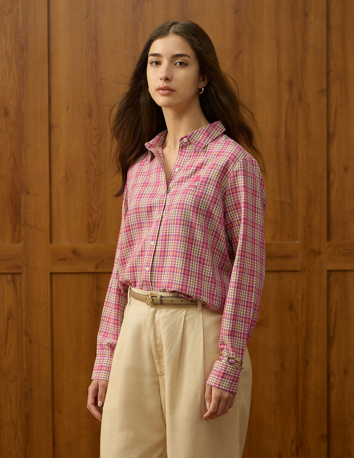 | Spread collar | Logo at chest | Full button placket | Long sleeves with barrel cuffs | Curved hemline | Gingham checked pattern | Regular weave | Regular fit |