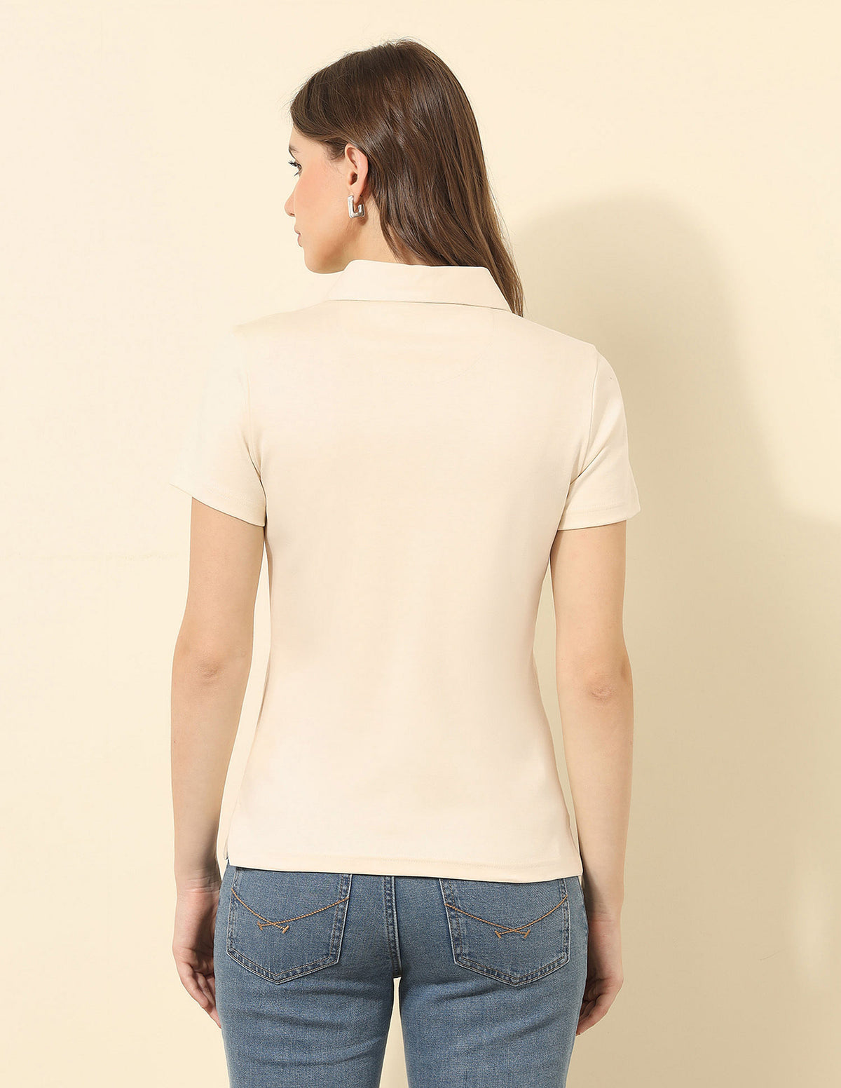 | Polo collar | Logo at chest | Short button placket | Short sleeves | Ribbed collar and sleeve hems | Straight hem | Solid pattern | Pique knit | Regular fit |