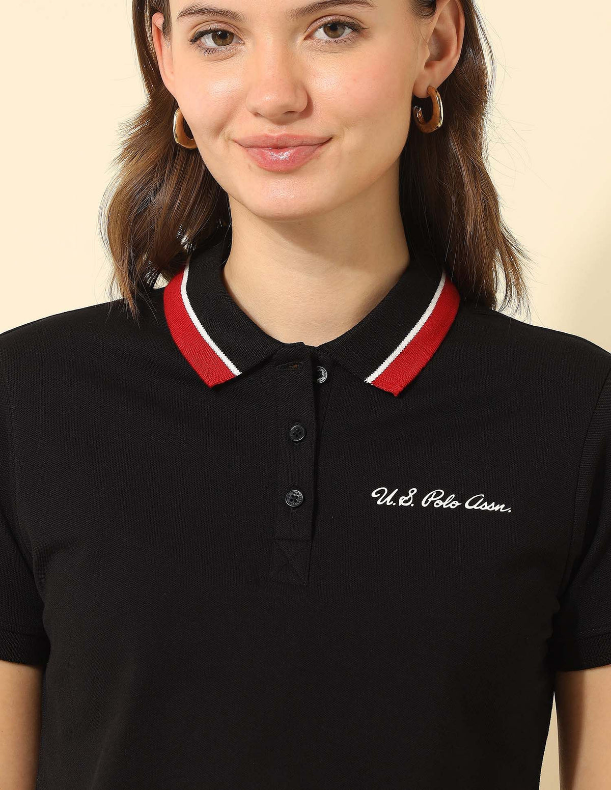 | Tipped polo collar | Logo at chest | Short button placket | Short sleeves | Ribbed collar and sleeve hems | Vented hem | Solid pattern | Pique knit | Regular fit |