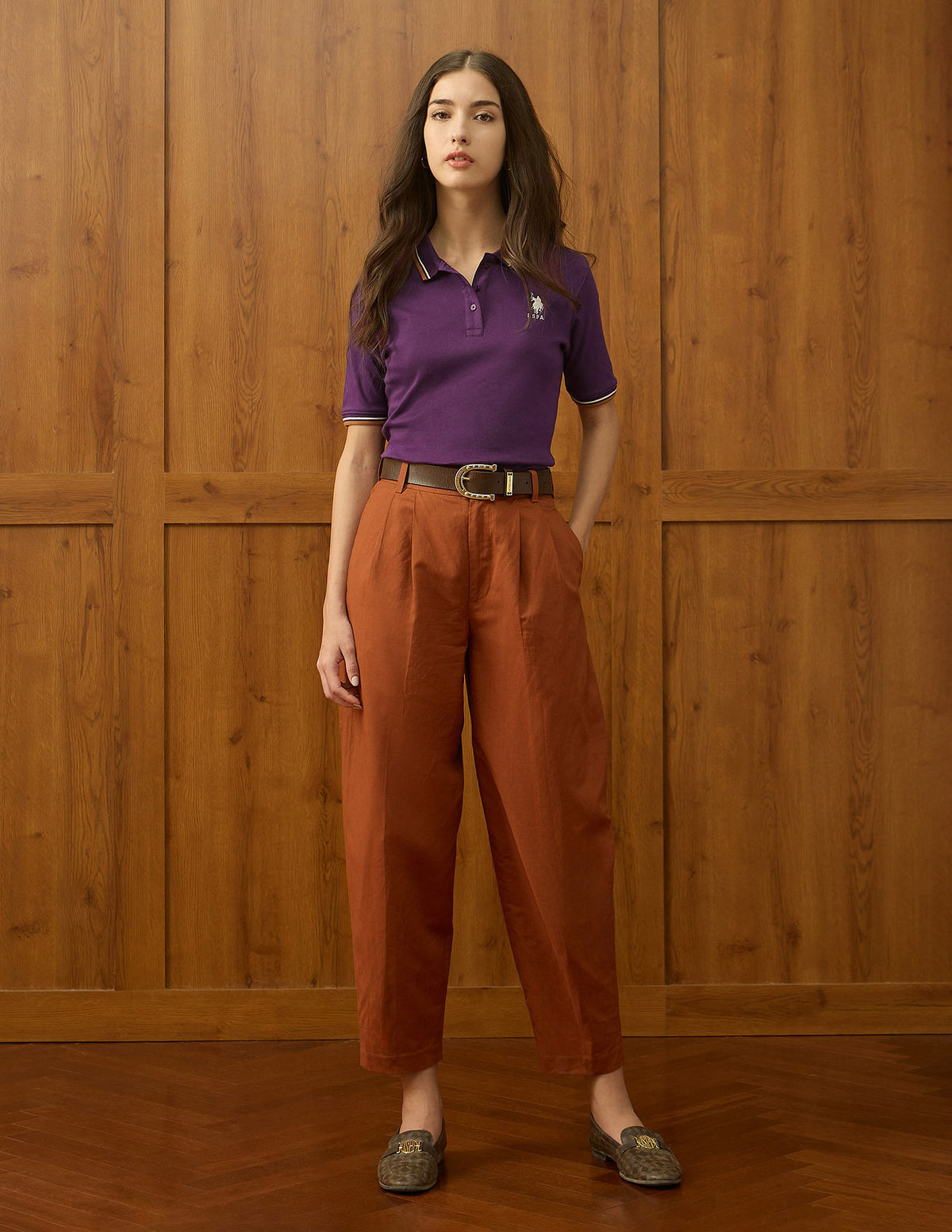 | Polo collar | Logo at chest | Short button placket | Short sleeves | Uneven vented hem | Solid pattern | Pique knit | Regular fit |