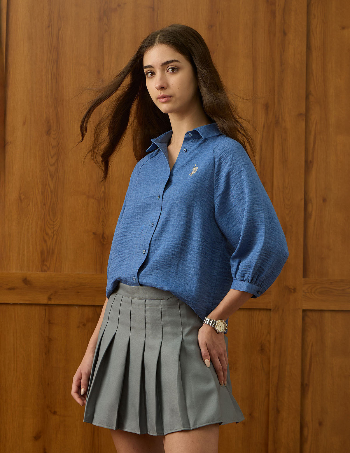 | Spread collar | Logo at chest | Full button placket | Long sleeves with barrel cuffs | Curved hemline | Solid pattern | Twill weave | Regular fit |